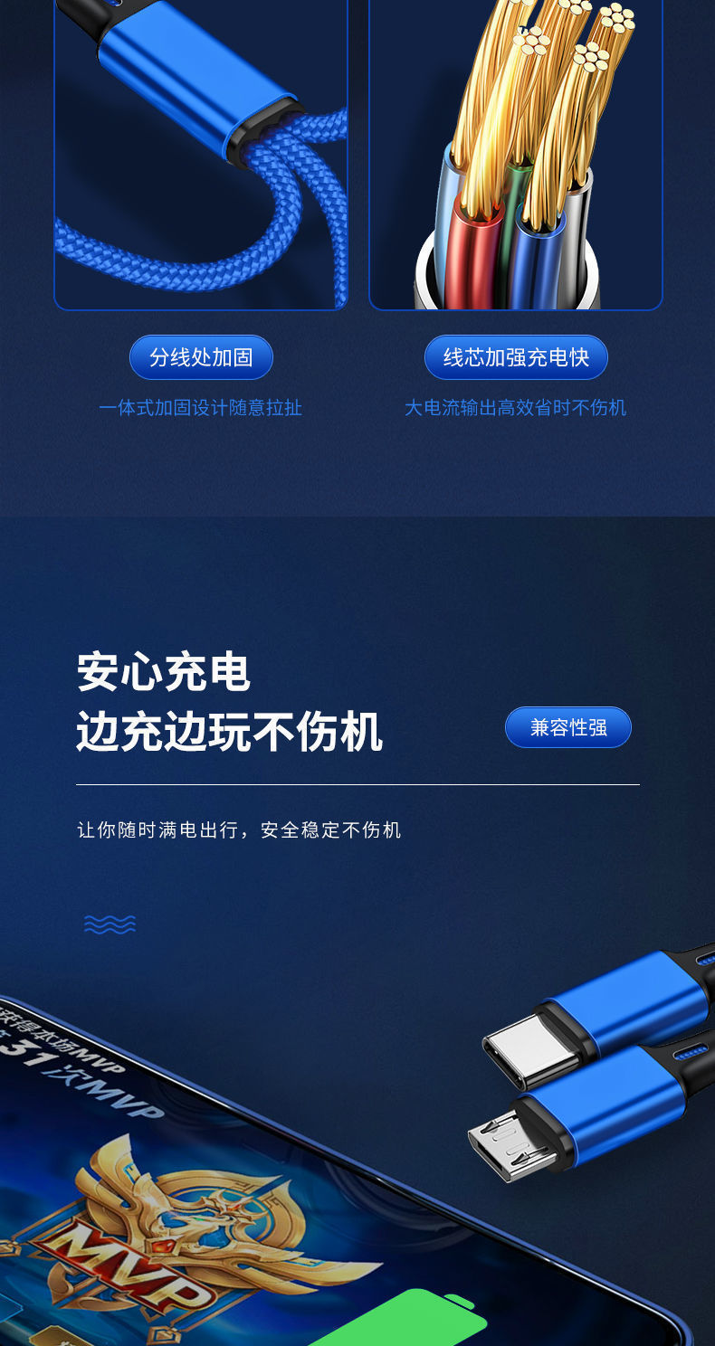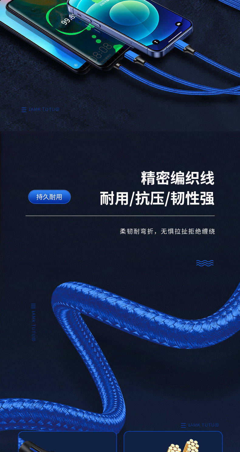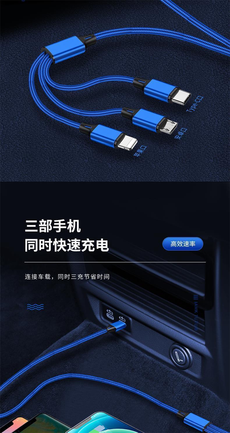 新品促销type-c转一拖三数据线 三合一充电线 PD一分三车载充电线