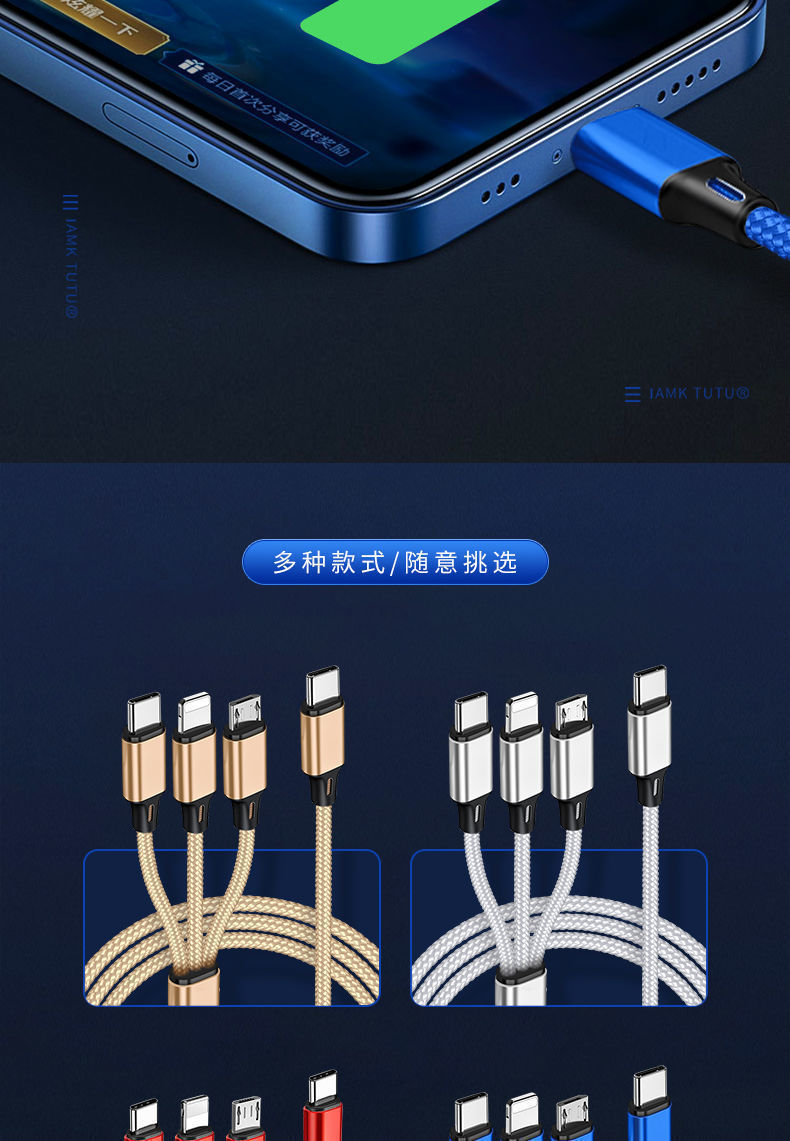 型号 TYPE—C一拖三 (裸线),TYPE—C一拖三+袋子包好,TYPE—C一拖三+盒子包好