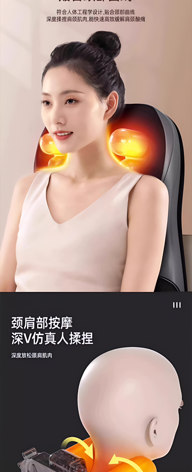 跨境爆款工厂家用热敷揉捏全身多功能按摩靠垫颈椎腰部背部按摩仪
