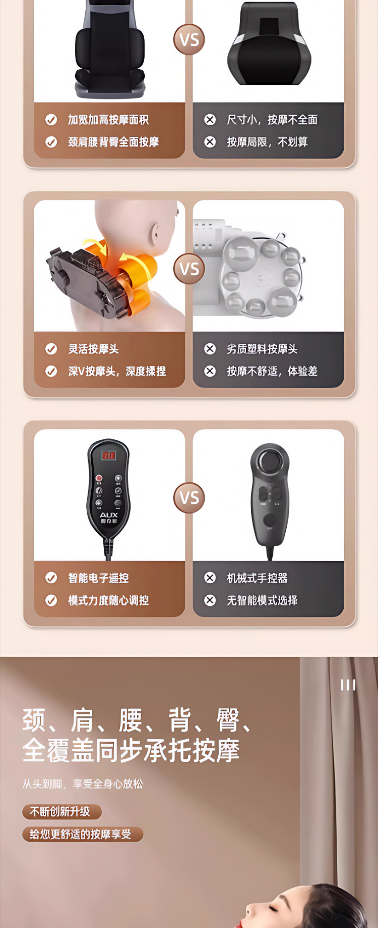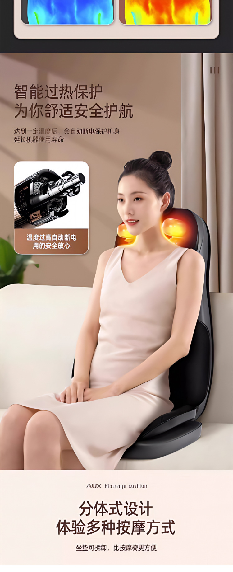 奥克斯按摩器颈椎腰背部全身自动多功能靠垫椅家用肩颈揉捏疏通仪