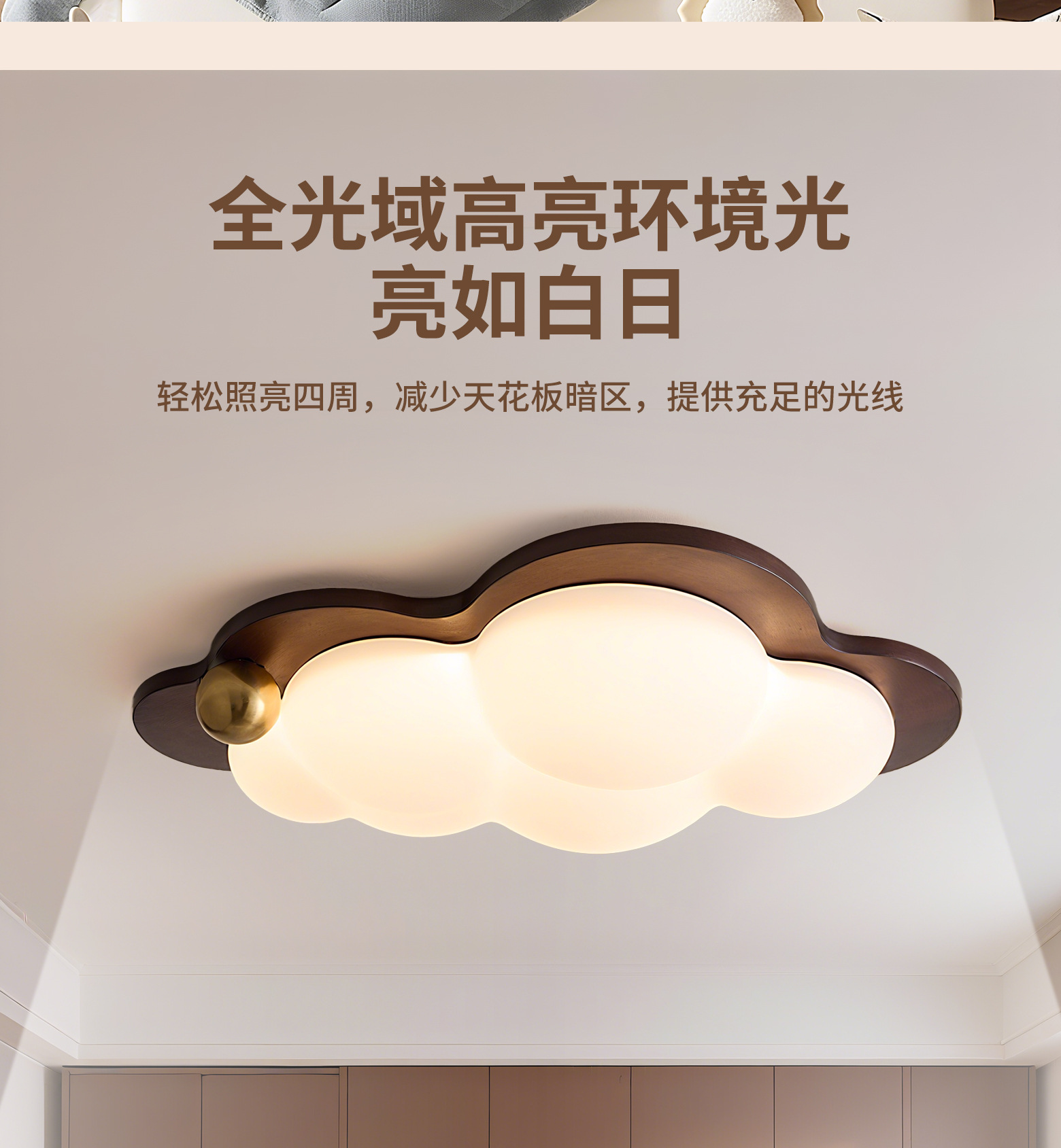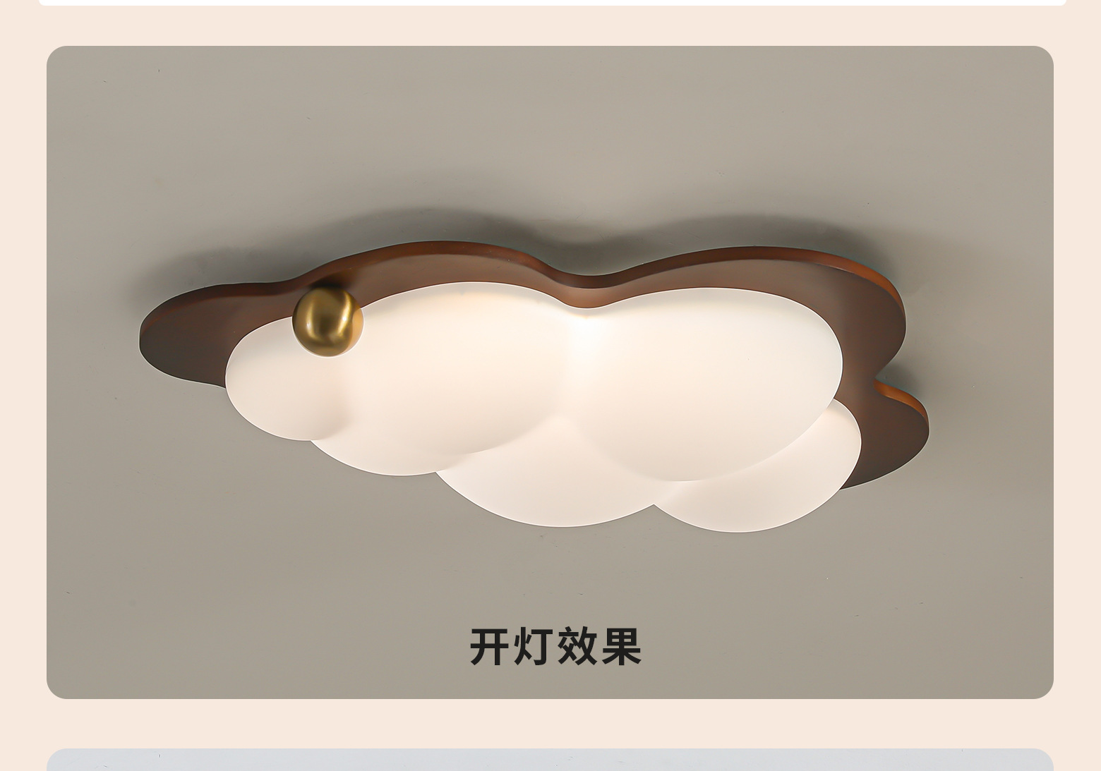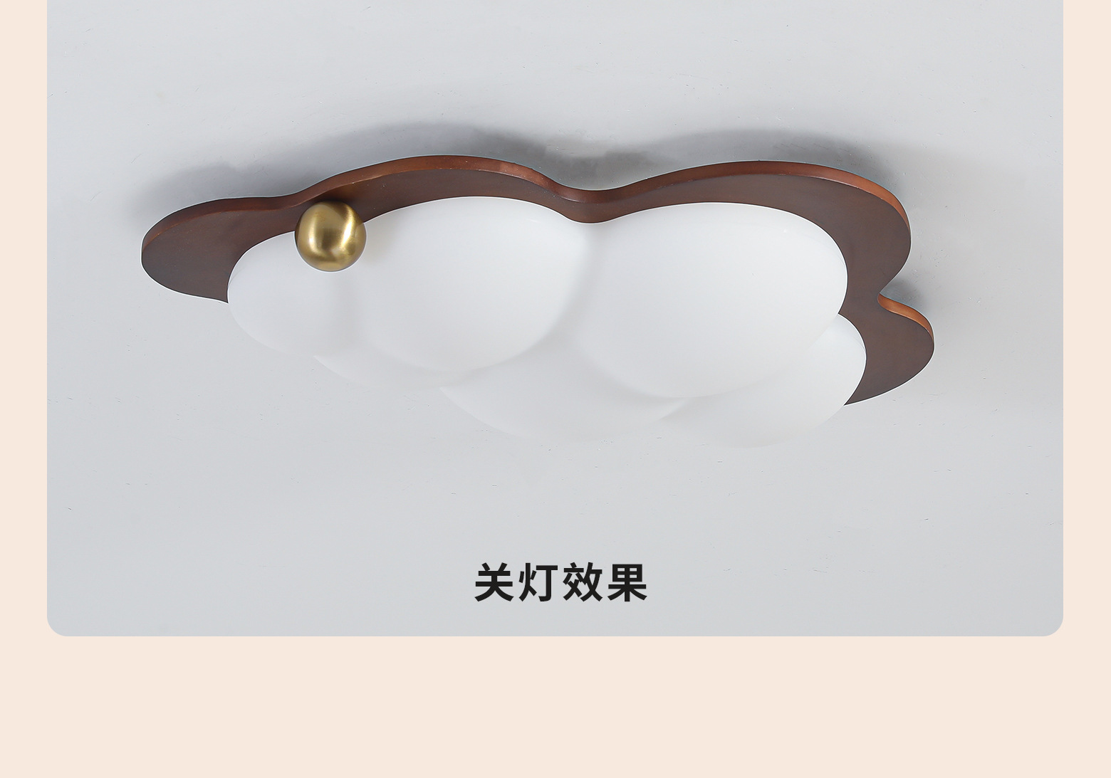 卧室灯中古风胡桃木色创意主卧房间灯复古简约护眼云朵吸顶灯L335