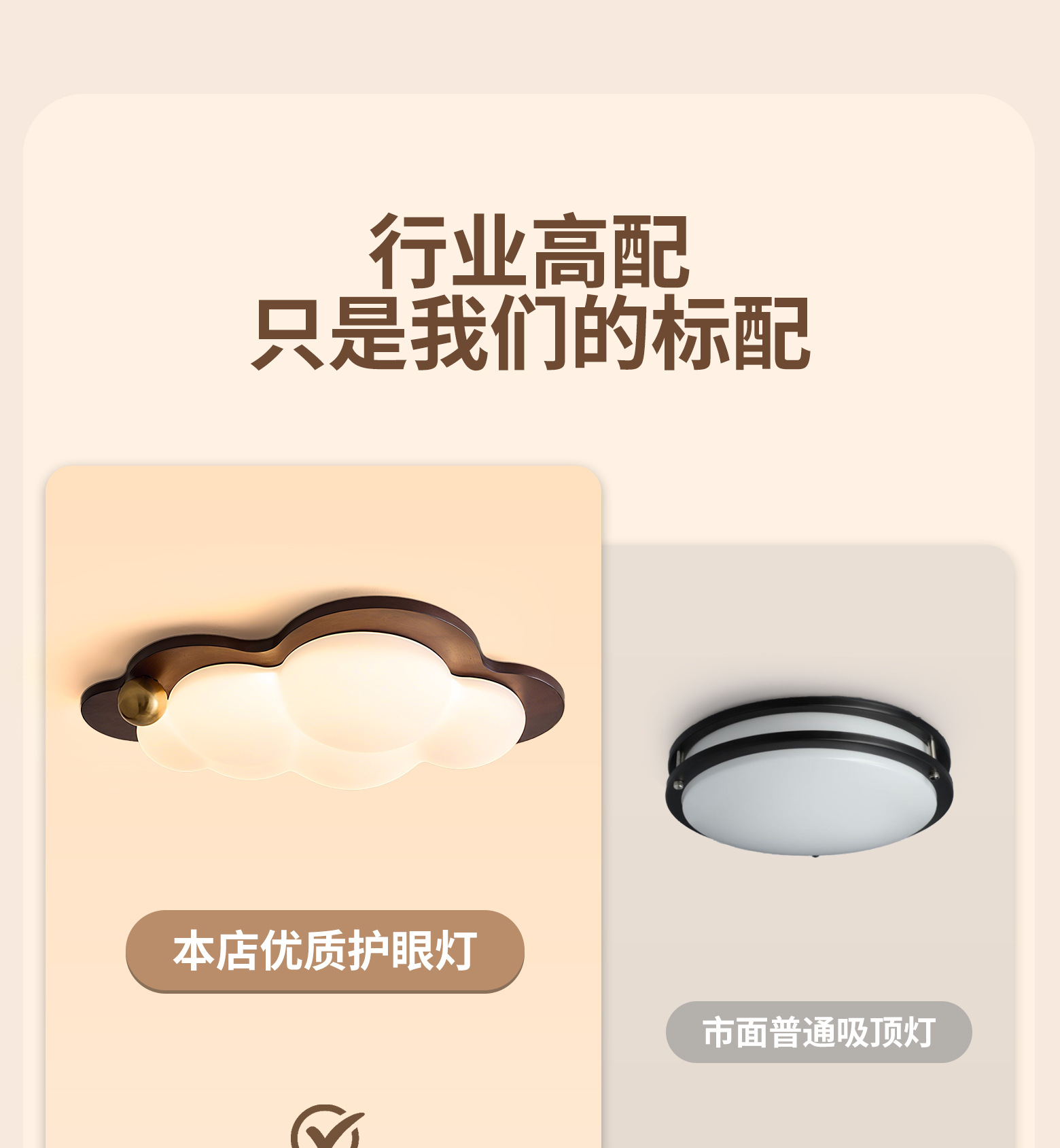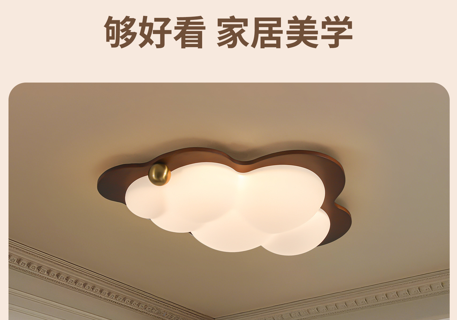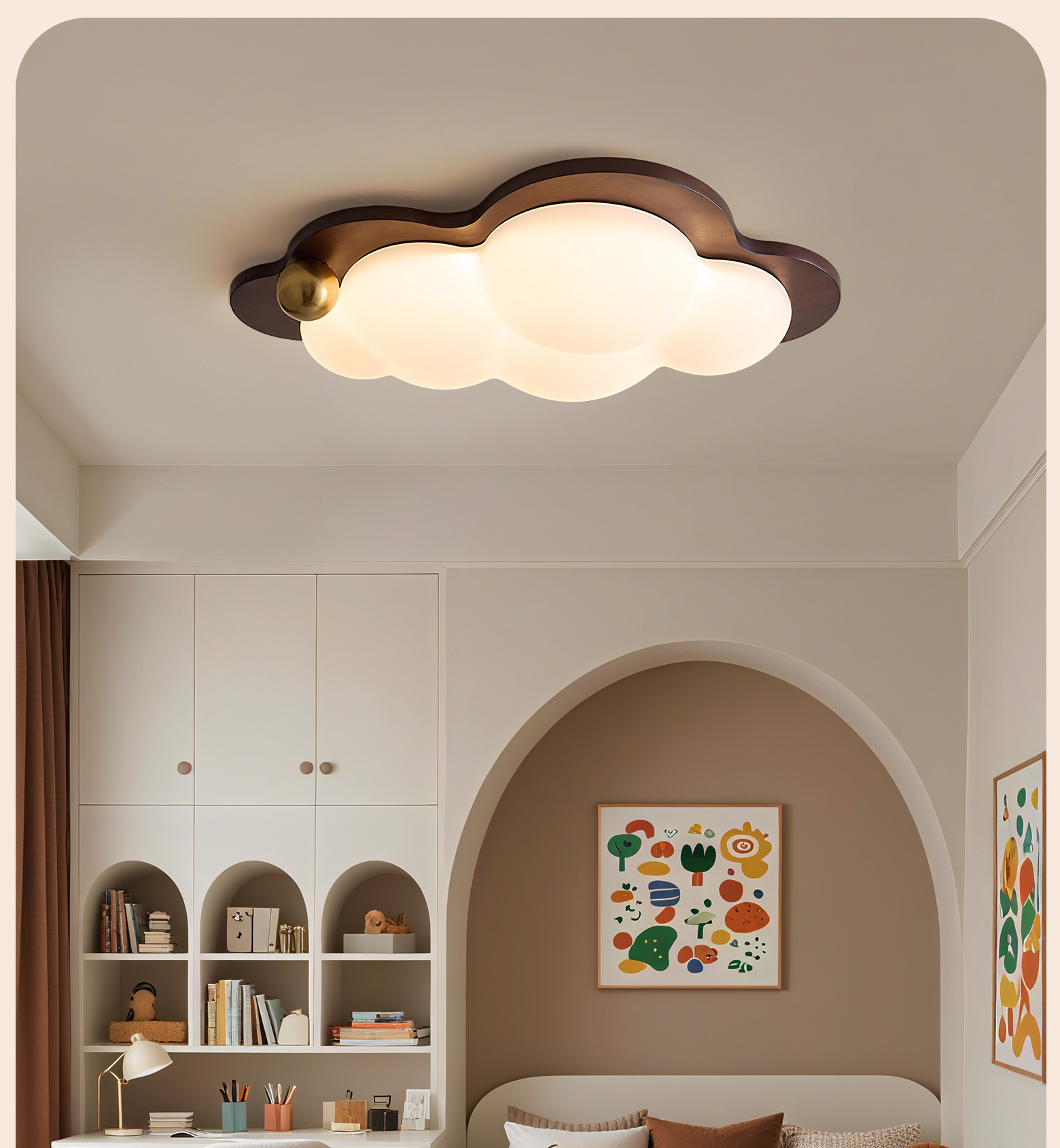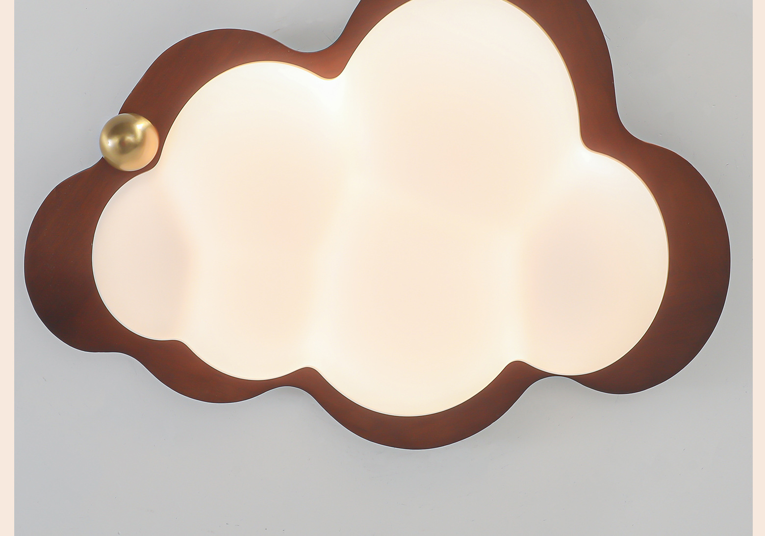 卧室灯中古风胡桃木色创意主卧房间灯复古简约护眼云朵吸顶灯L335