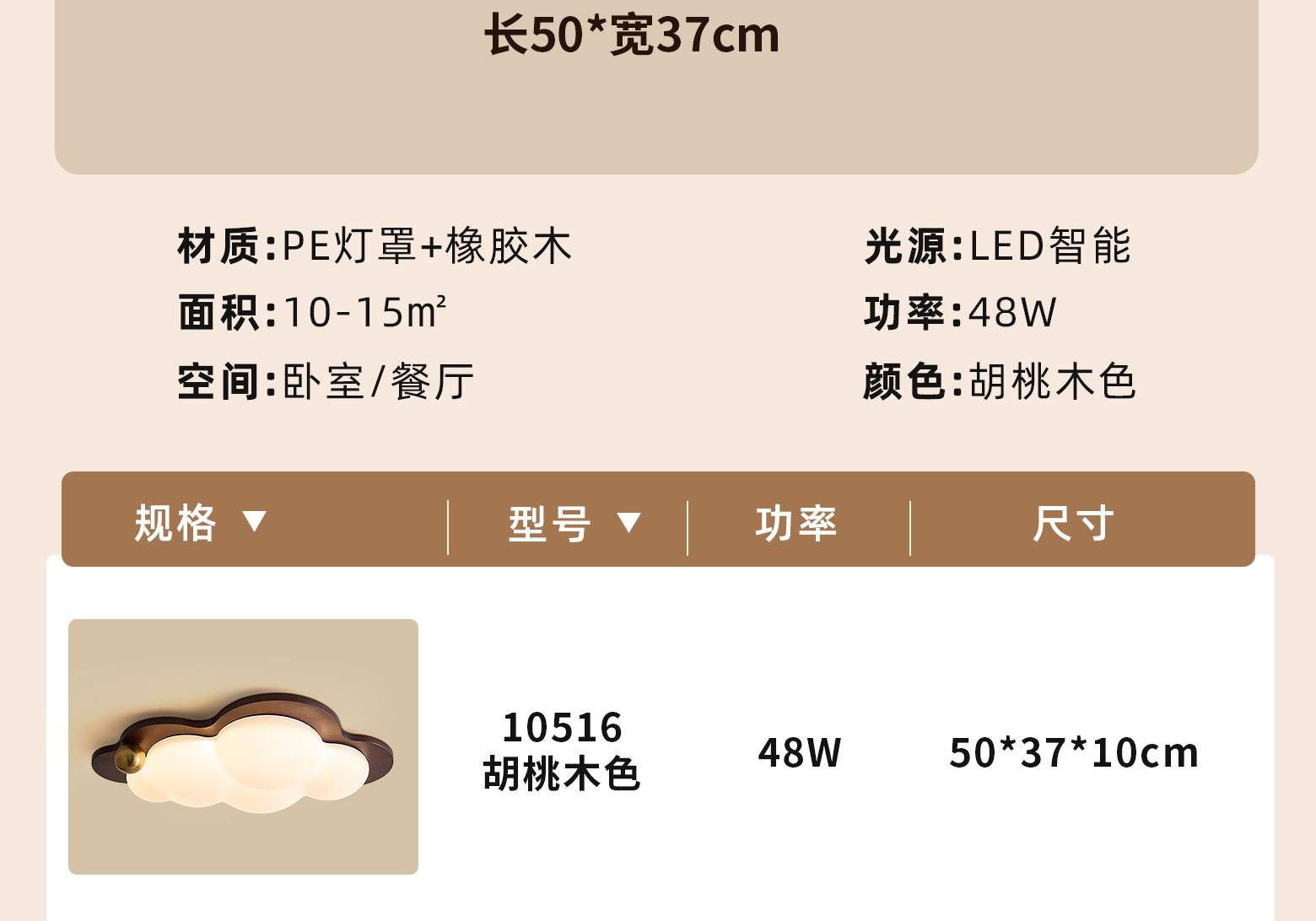 光源功率 10516-胡桃木色-云朵50cm-三色变光48W-全光谱(中),10516-胡桃木色-云朵50cm-智能天猫48W-全光谱(中),10516-胡桃木色-云朵50cm-已接入米家app-48W-全光谱(中)