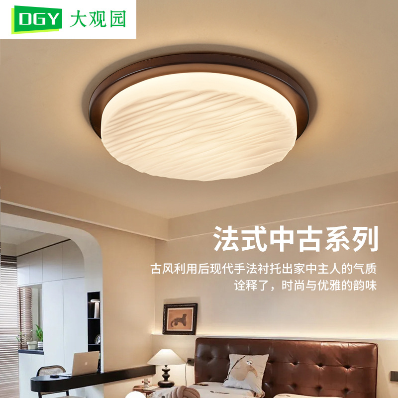 Daguan Yuan 寝室ランプ 2025 新しいレトロアメリカンウォールナット色ランプ中世スタイルの寝室の天井ランプ 357L