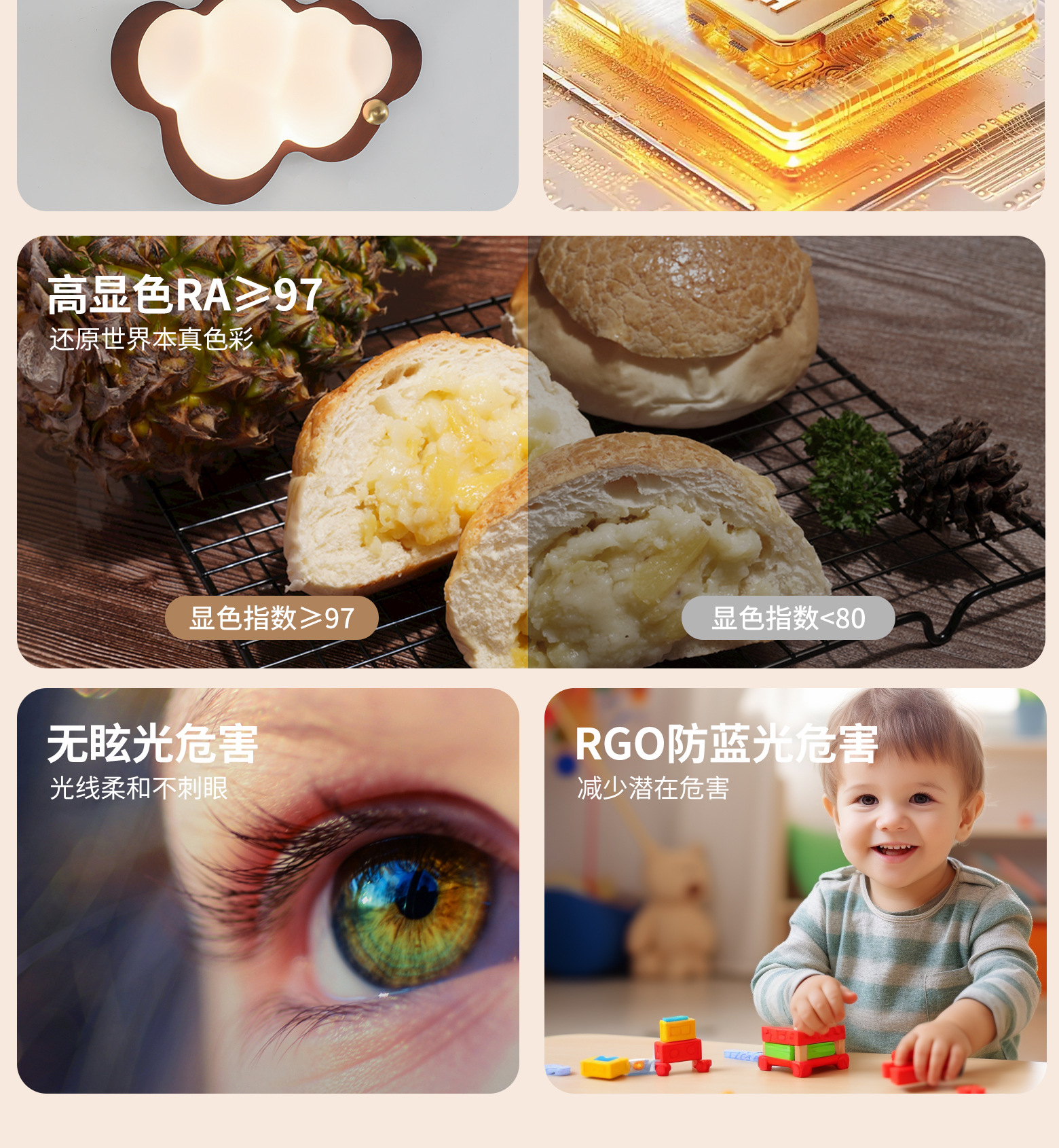 卧室灯中古风儿童房吸顶灯护眼创意奶油风云朵灯房间中山灯具179L