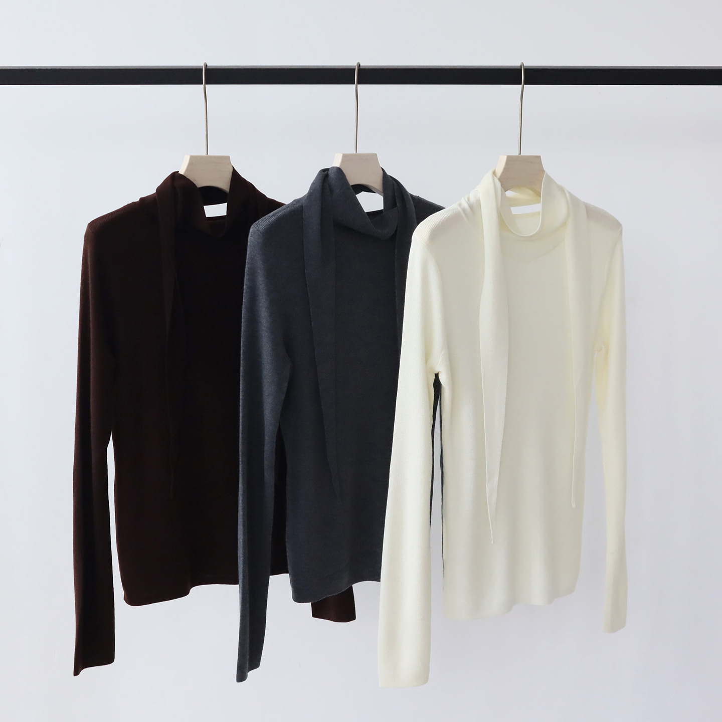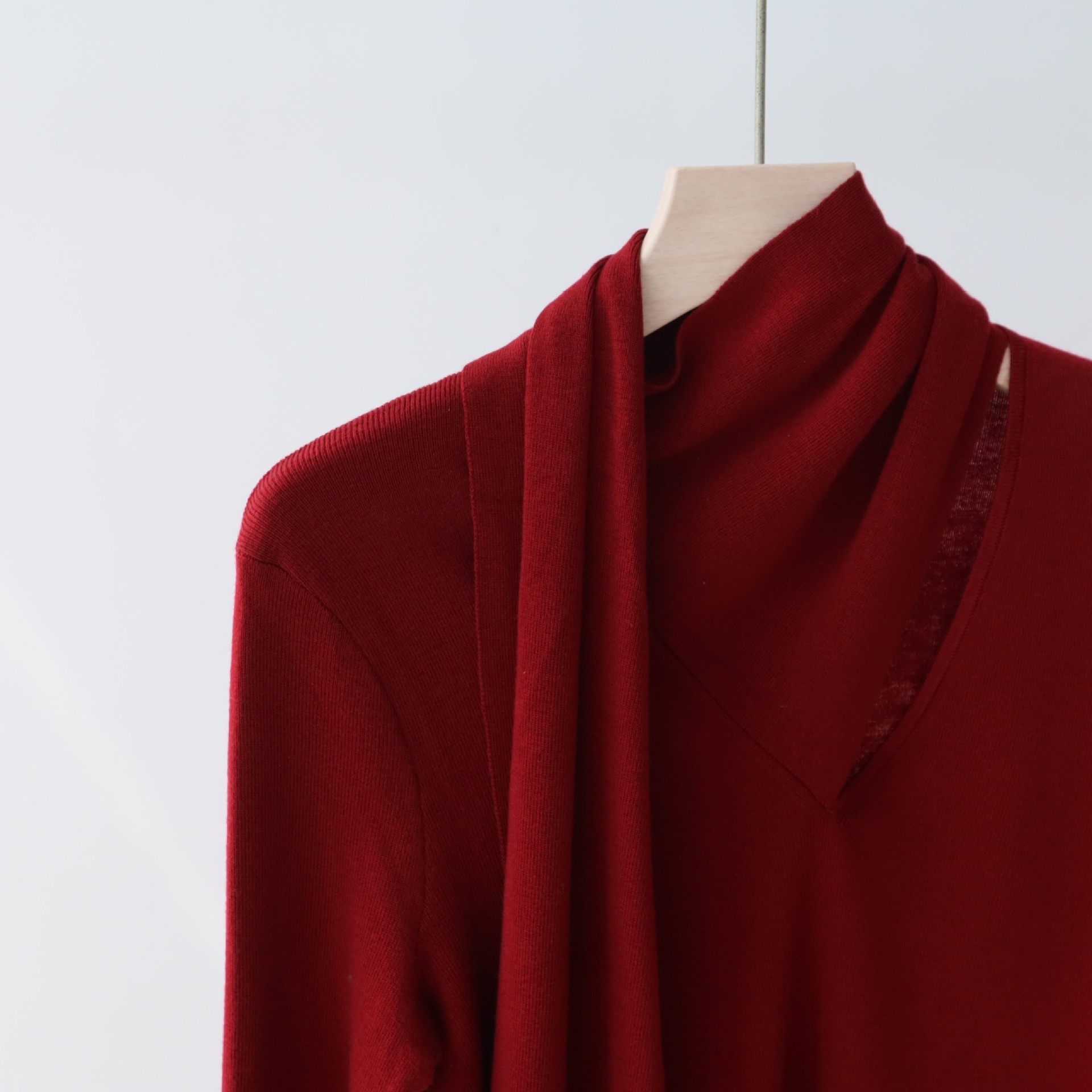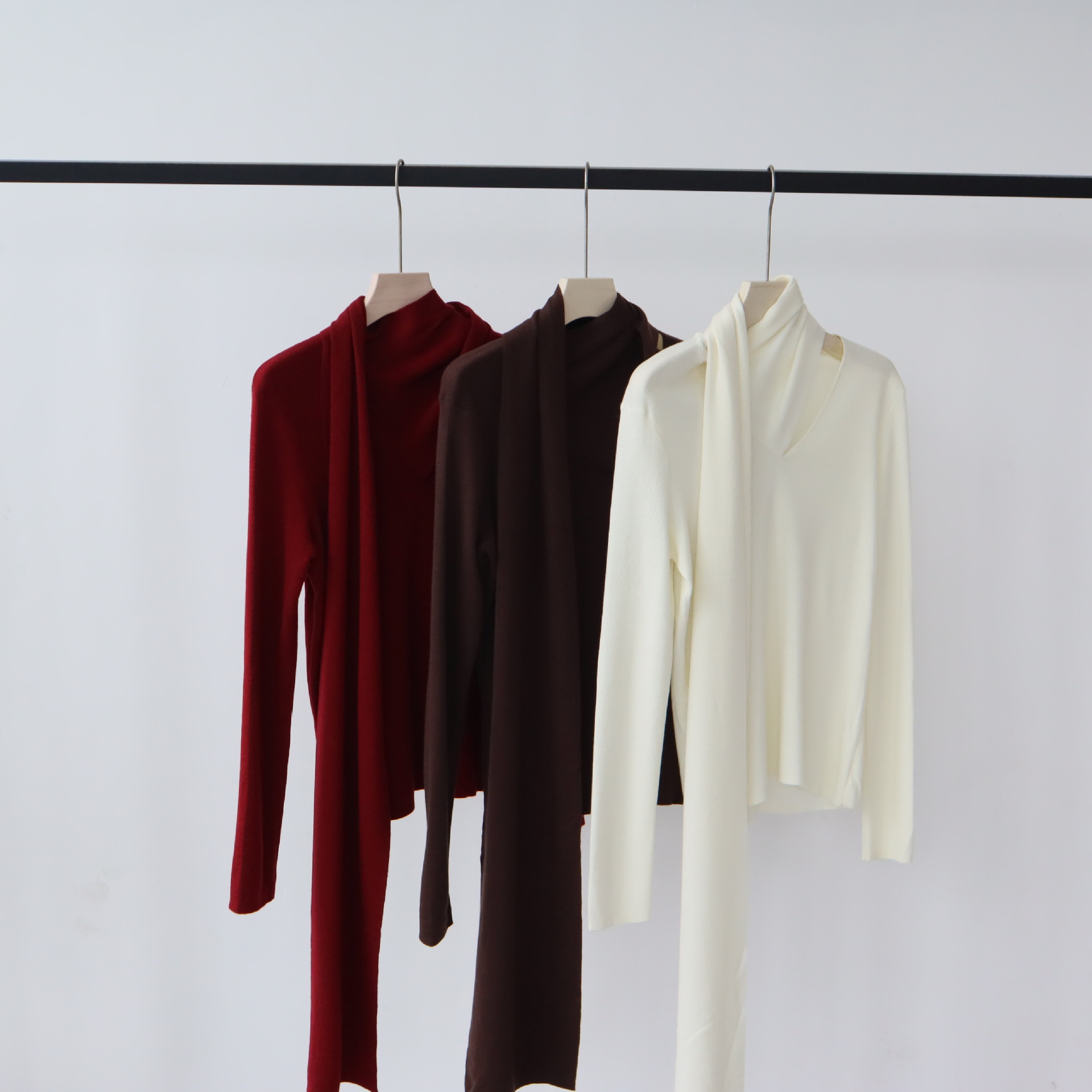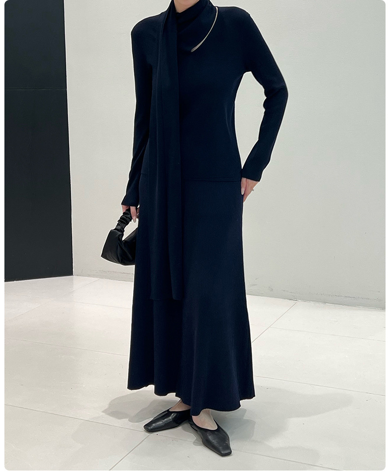 十三行女装早秋穿搭羊毛混纺针织衫高级感围巾领秋季上衣毛衣内搭