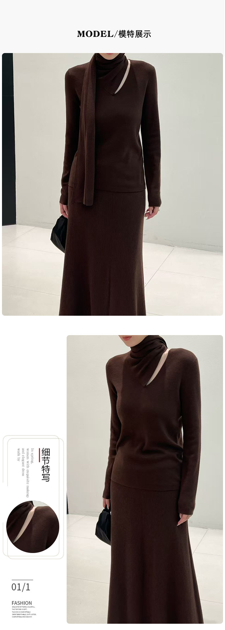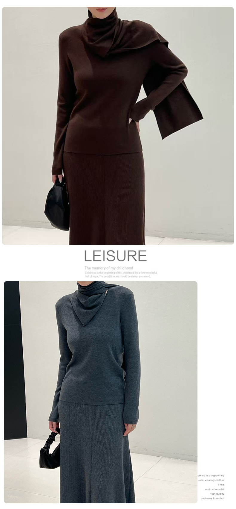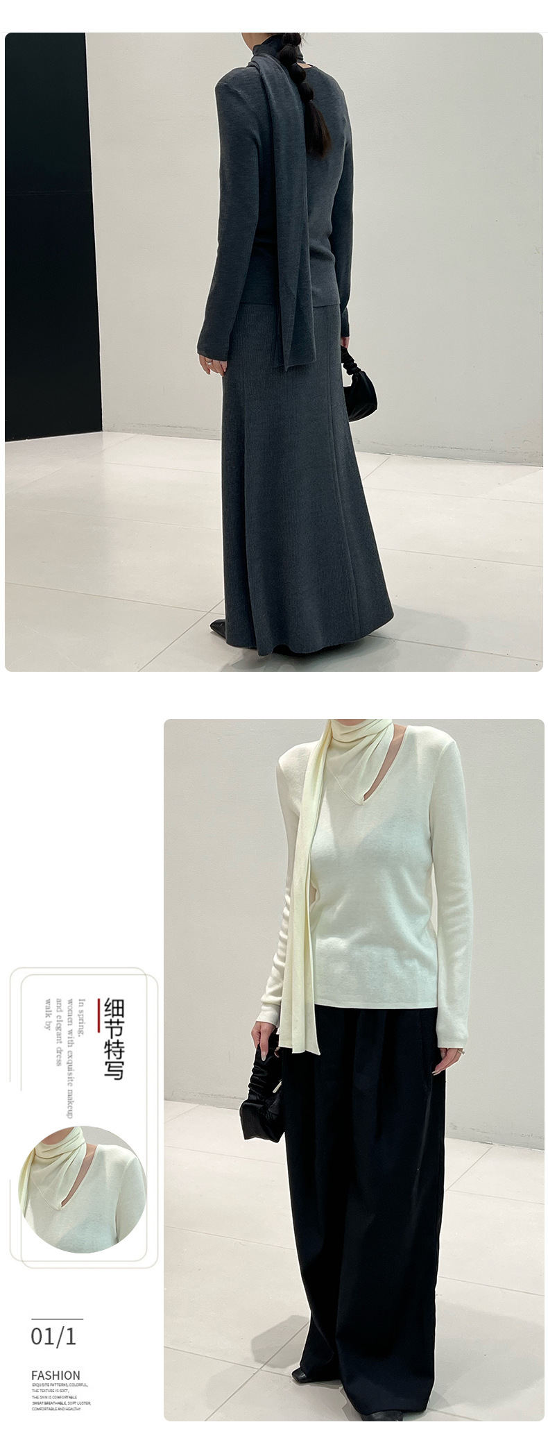 十三行女装早秋穿搭羊毛混纺针织衫高级感围巾领秋季上衣毛衣内搭