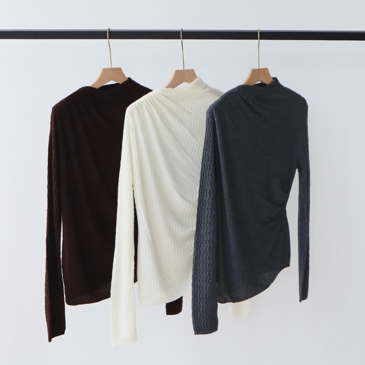 十三行女装羊毛混纺针织衫秋冬穿搭高级感褶皱打底衫毛衣独特纹理