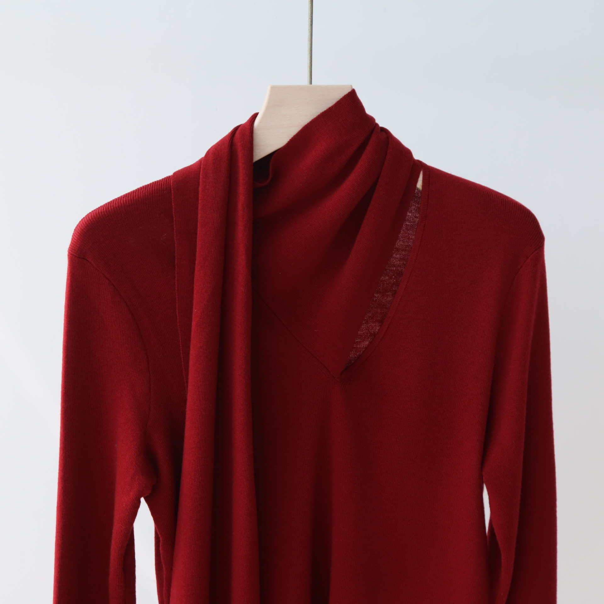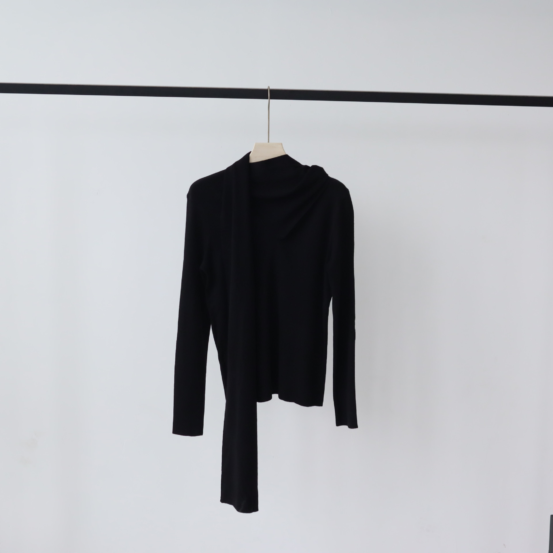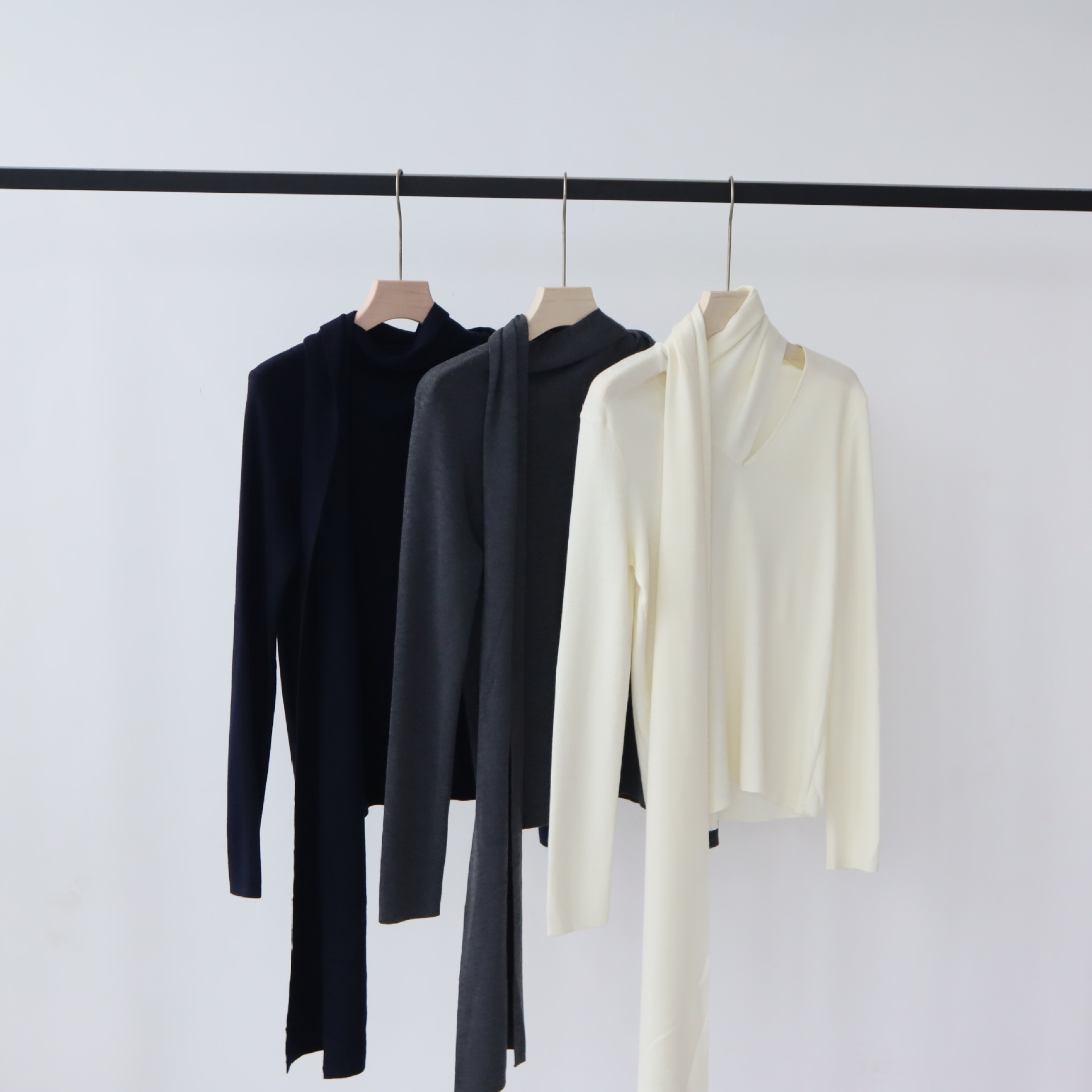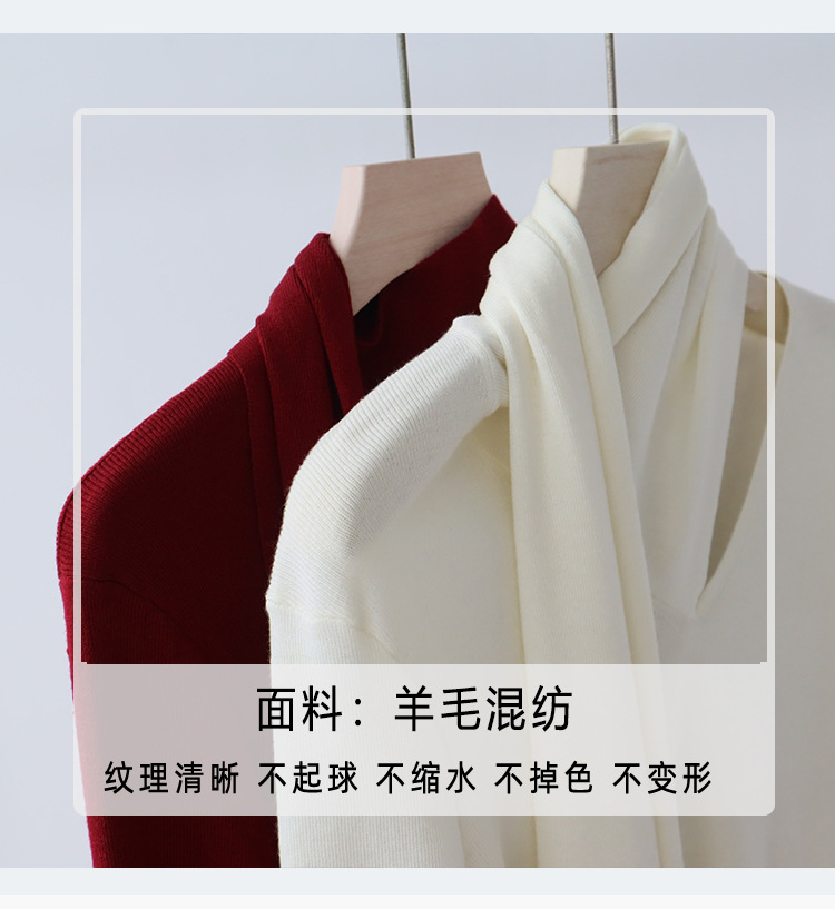 十三行女装早秋羊毛混纺针织衫长袖打底衫高级感围巾领秋季毛衣女