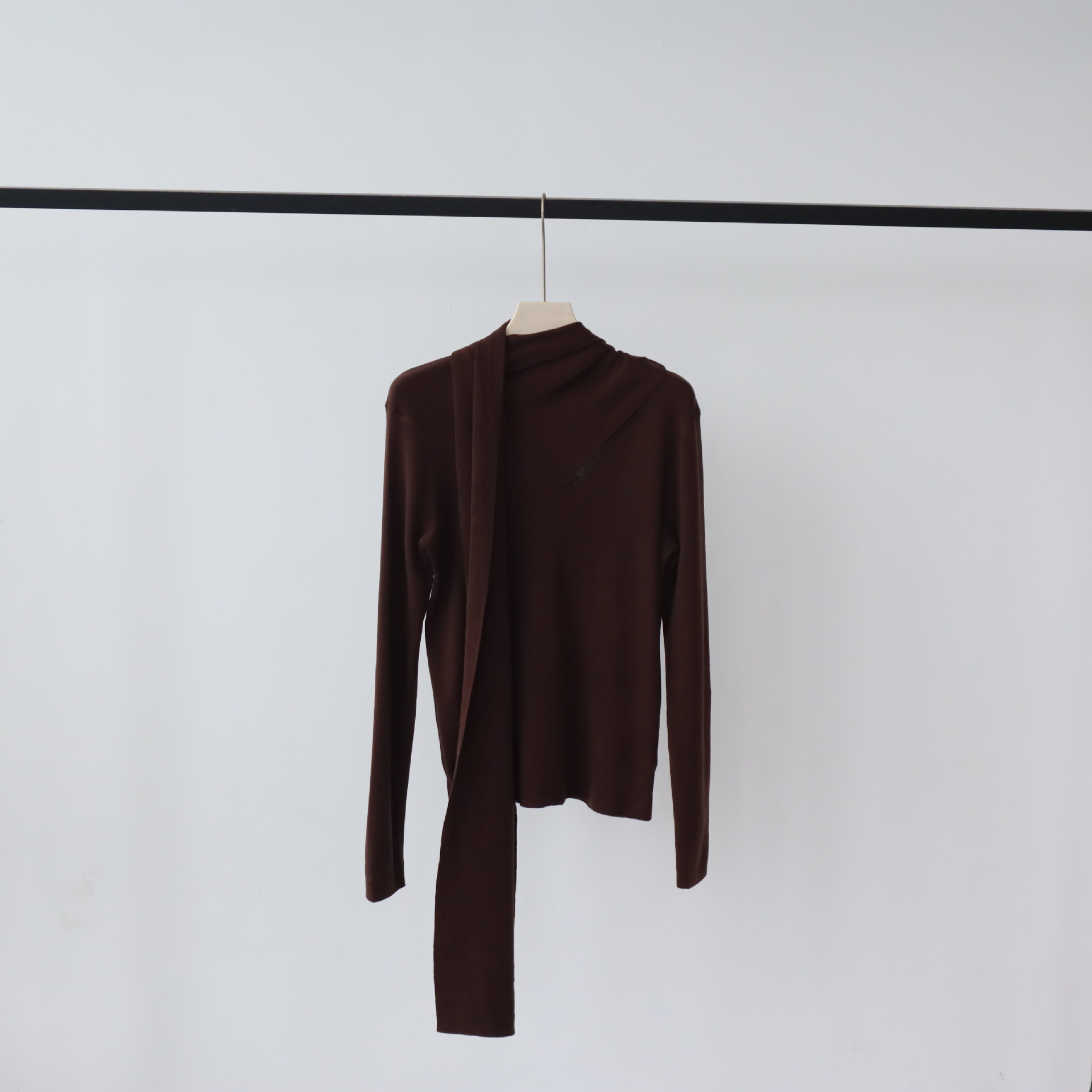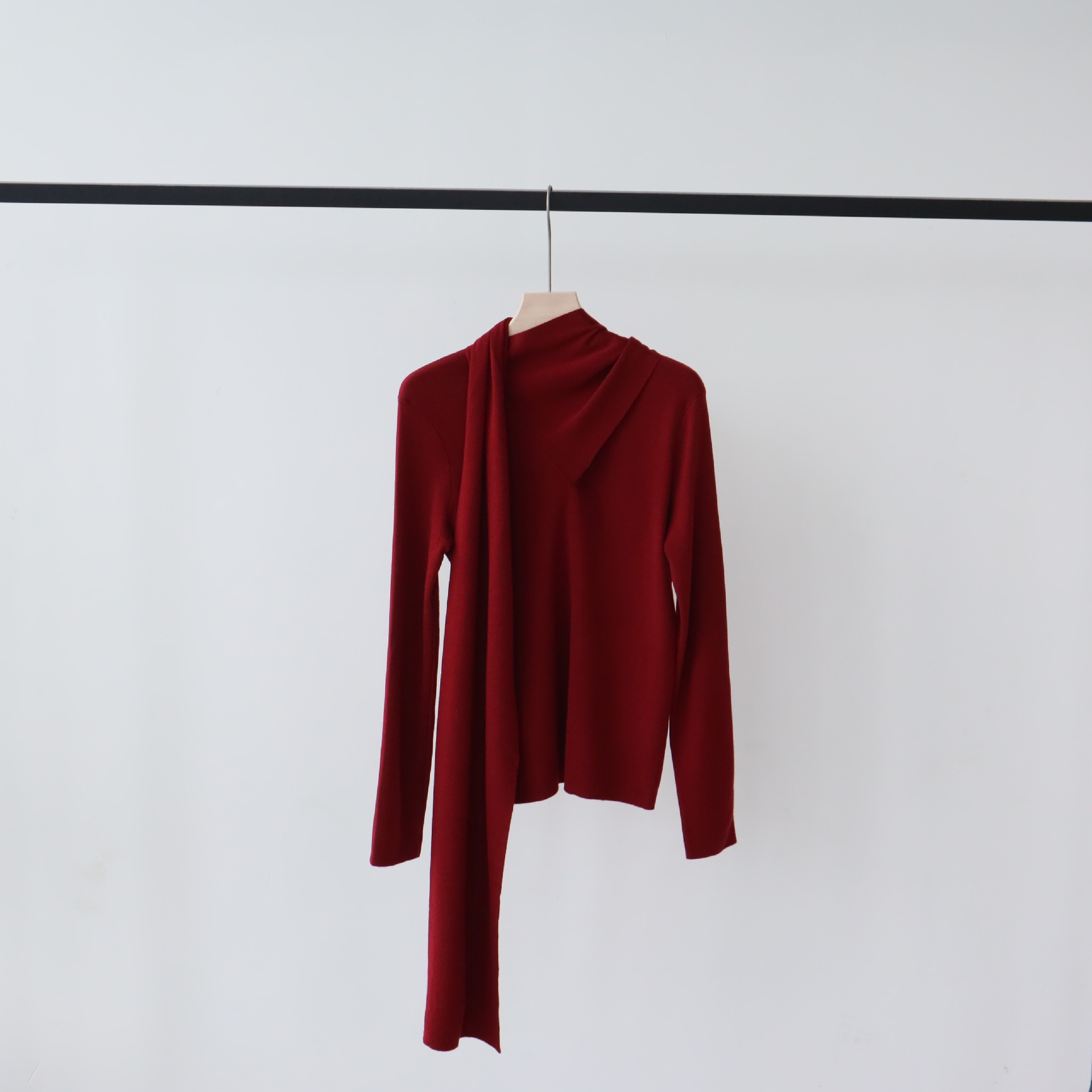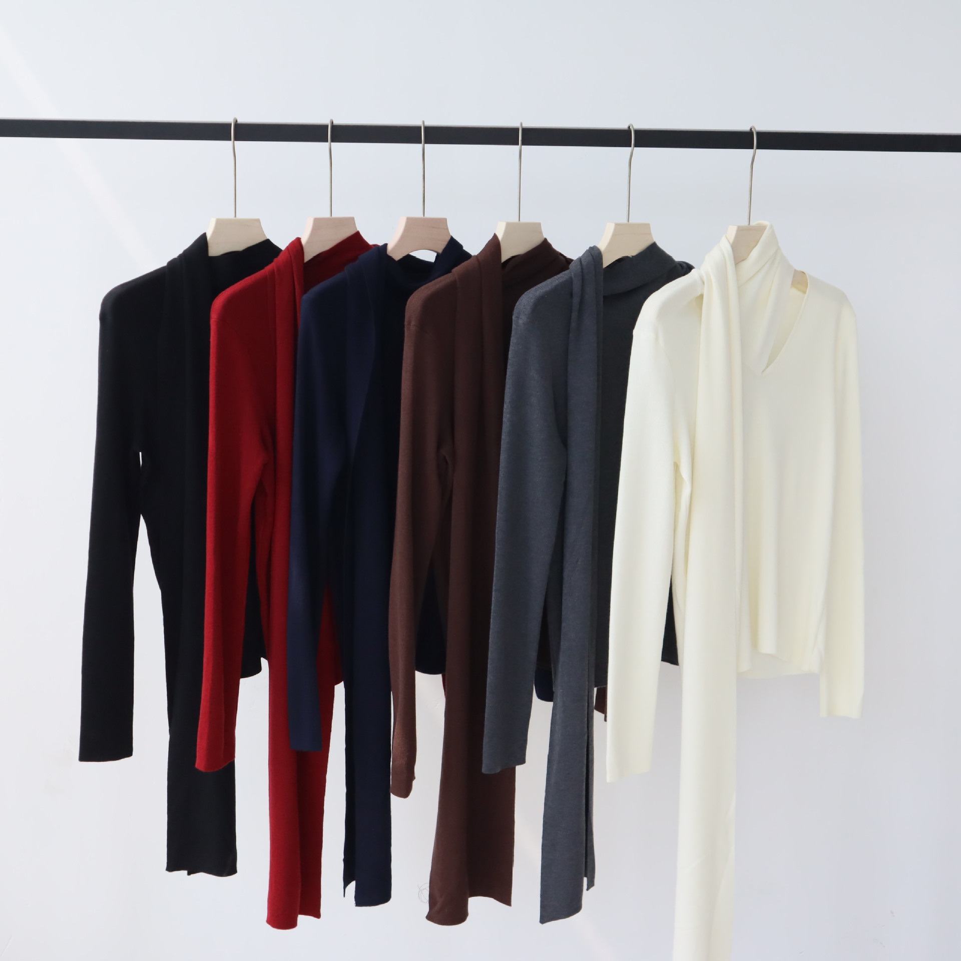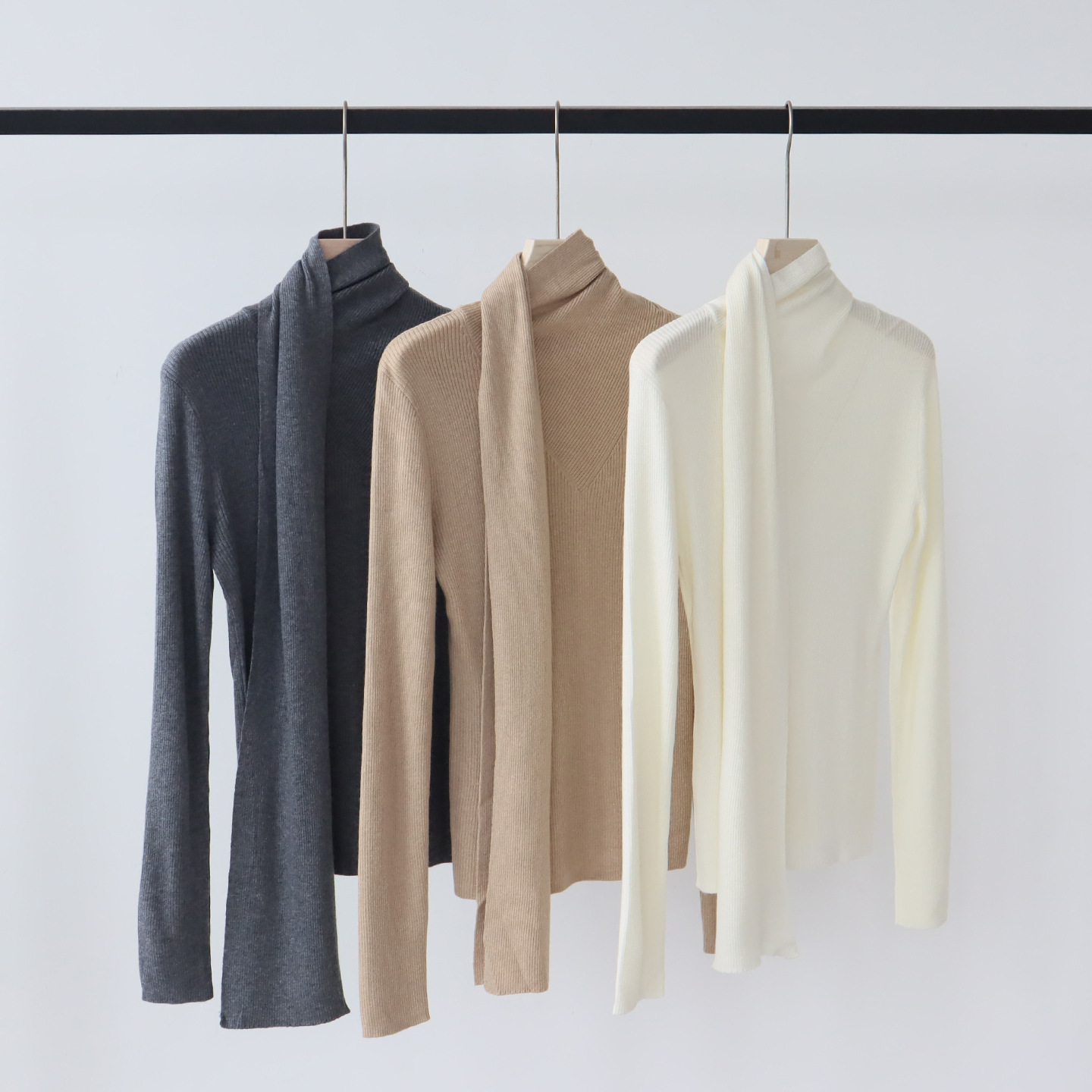 十三行女装早秋羊毛混纺针织衫长袖打底衫高级感围巾领秋季毛衣女