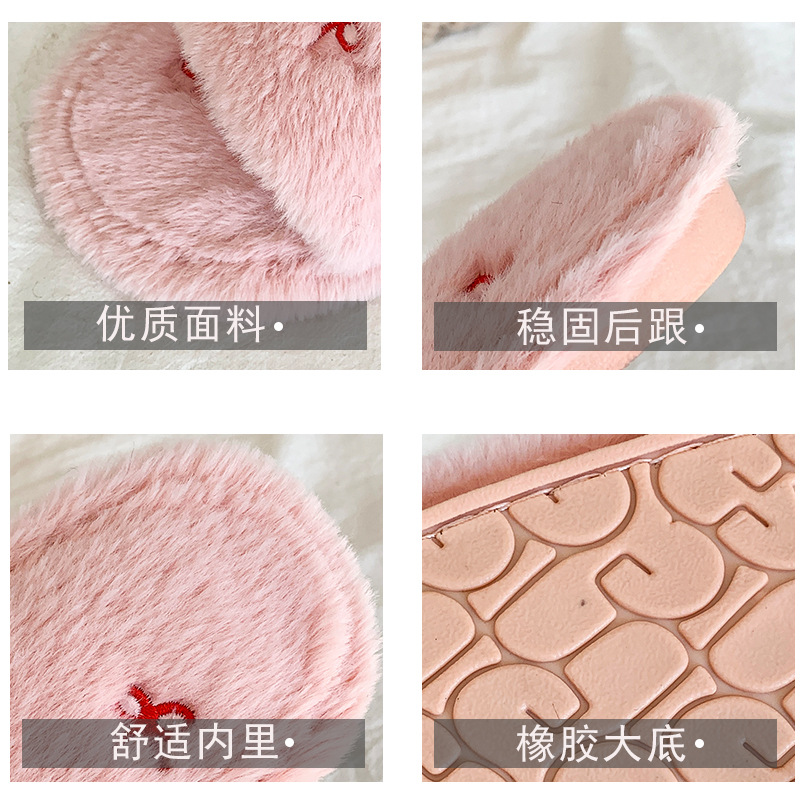 厂家批发跨境新款毛拖鞋秋冬厚底毛绒刺绣拖鞋室内家用女士家居鞋