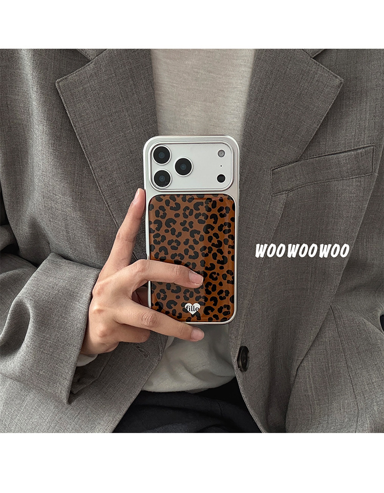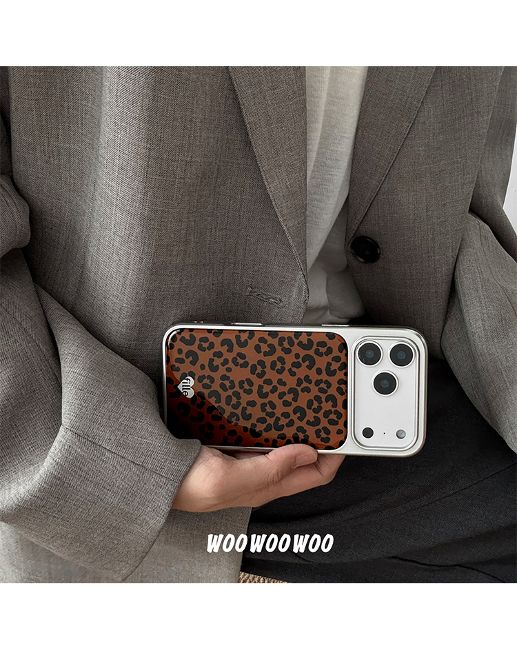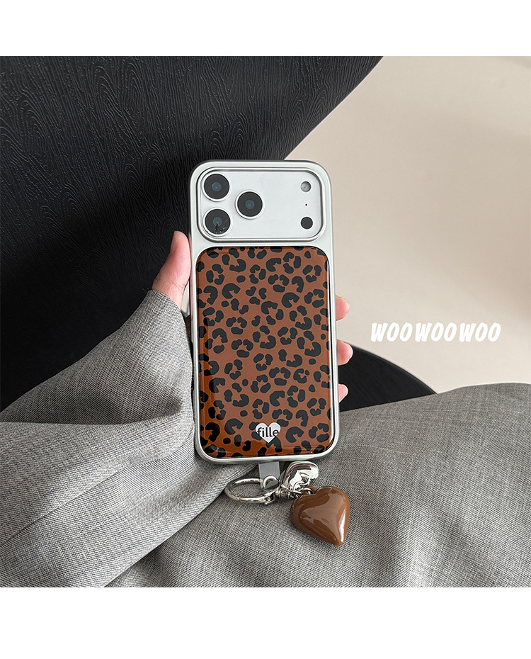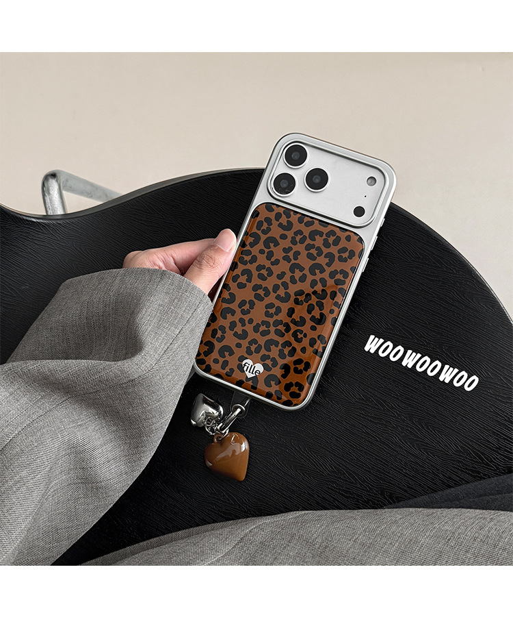 WOOWOOWOO小众ins复古棕色豹纹手机壳爱心挂件适用iphone16promax