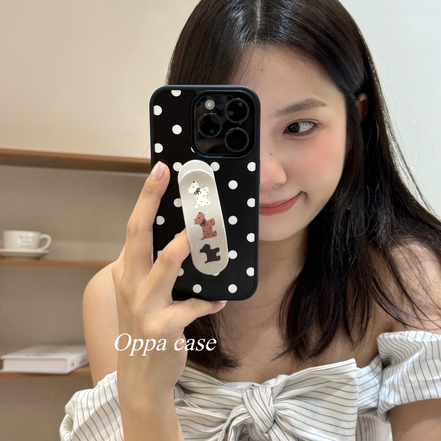韓国インニッチかわいい水玉模様のバンドエイド子犬ホルダー Apple 16promax 携帯電話ケース iphon に適しています