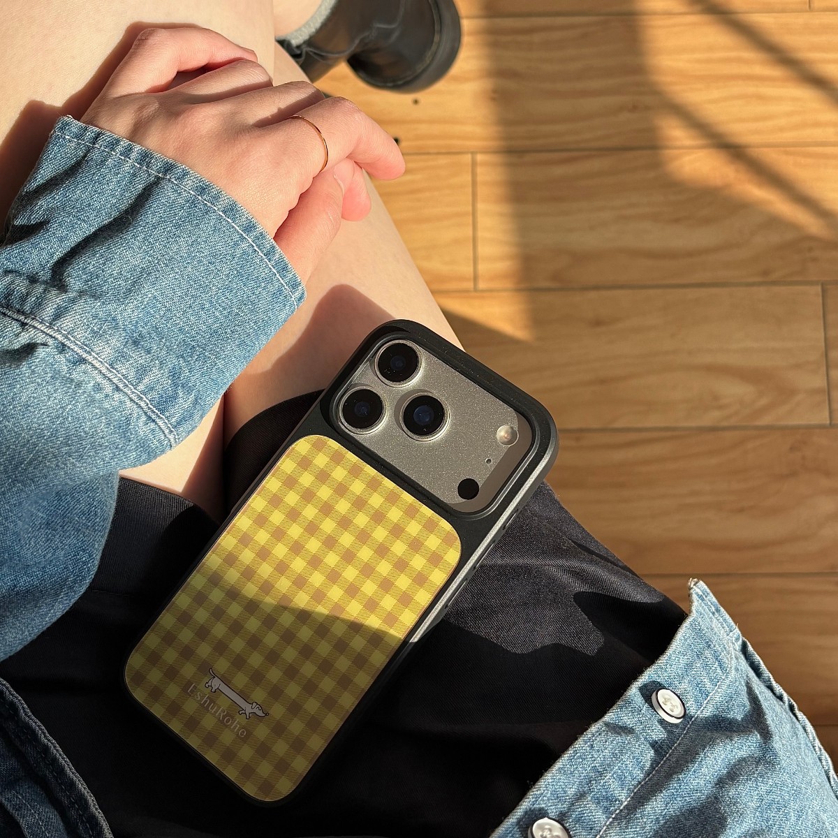 法式浪漫复古棕黄格子腊肠狗EshuRohe苹果iPhone17promax手机壳16