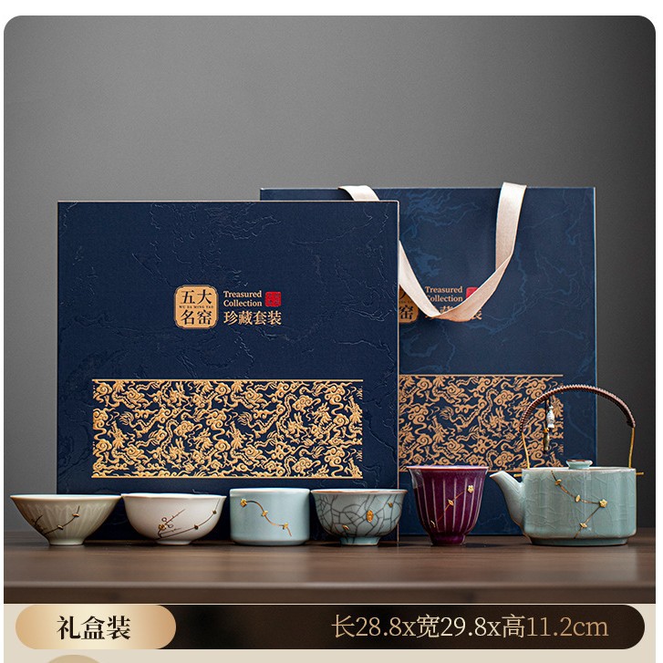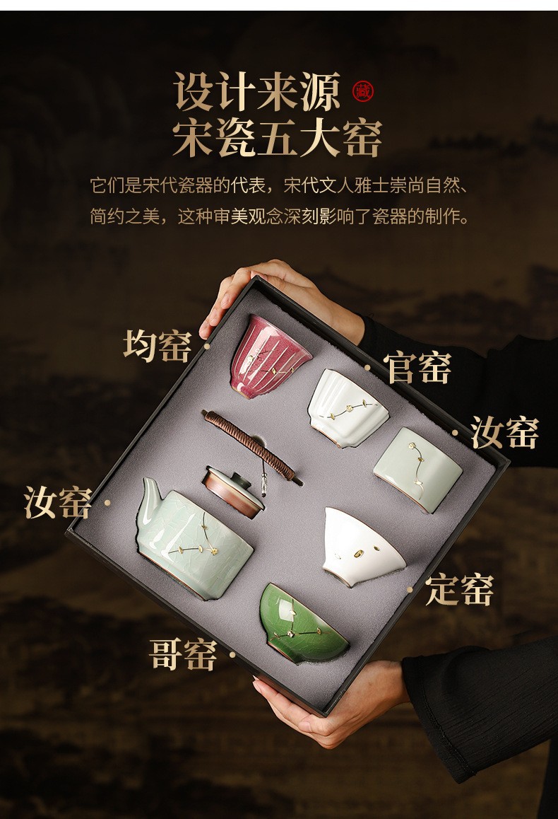 五大名窑功夫茶具套装陶瓷主人茶杯礼盒中式宋代美学伴手礼品定制