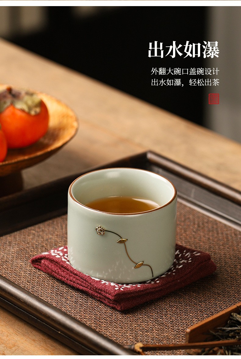 汝窯茶杯茶水分離杯中国式事務室湯杯礼箱高級濾過陶磁器杯プレゼント