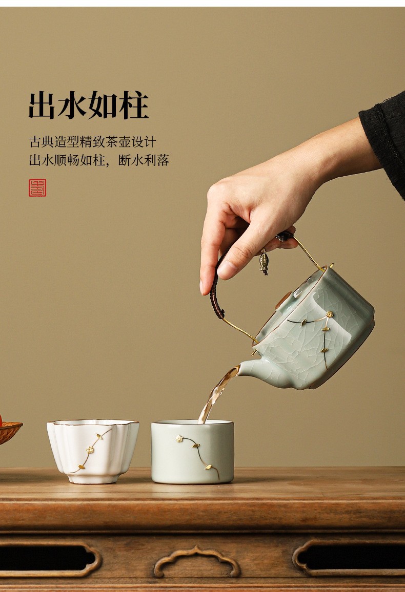 米黄汝窯一壺四杯快客杯シンプル旅行茶器セット屋外ポータブルプレゼントティーポット