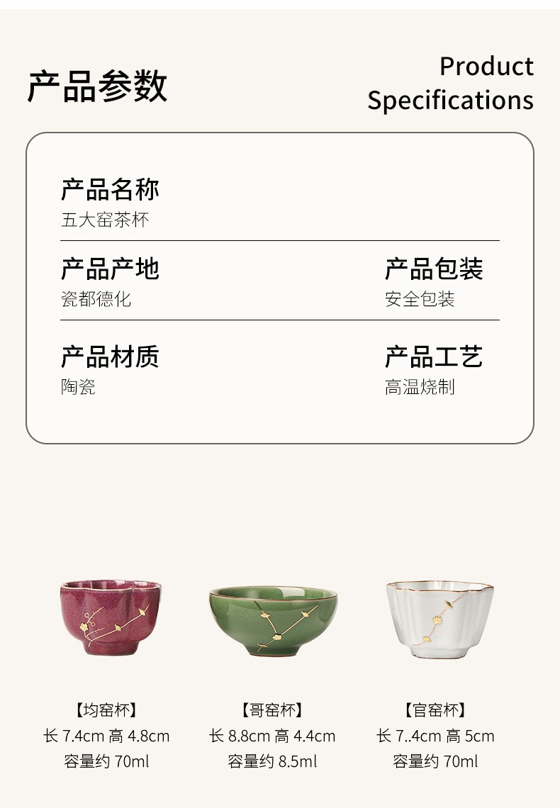颜色 风雅宋韵五大窑个人杯(礼盒装),五大名窑套组(礼盒装)