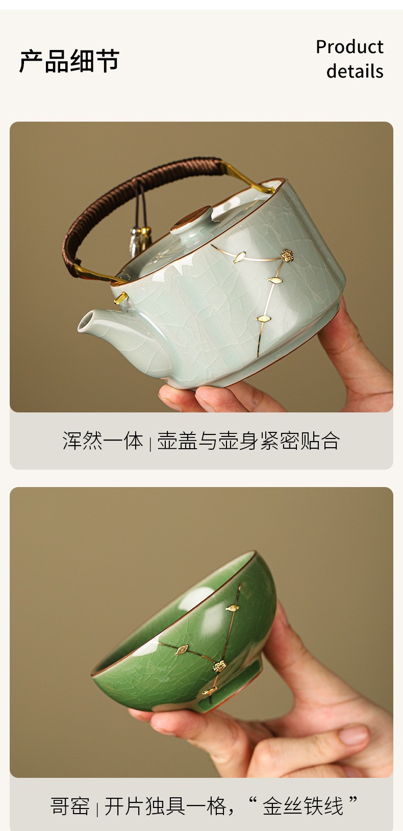 国潮五大名窑套装功夫茶具品茗杯陶瓷茶杯提梁壶送礼长辈喝茶专用