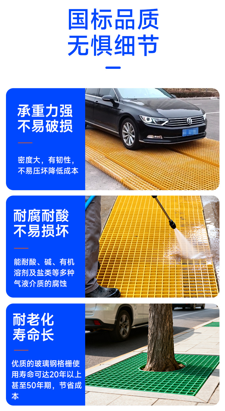 FRPグレーチング 下水池 排水溝 蓋板 市政樹木池 格子板 洗車場 FRPグレーチング板