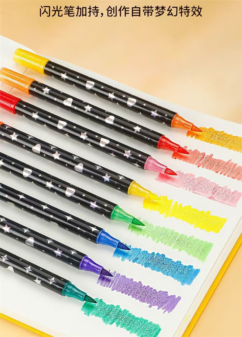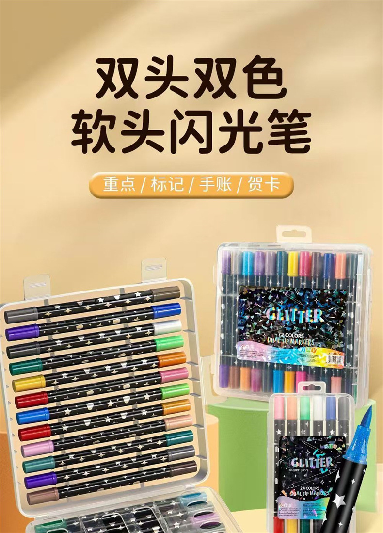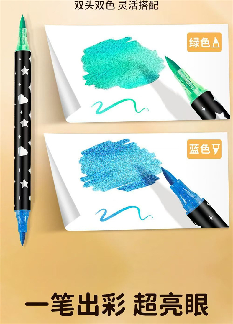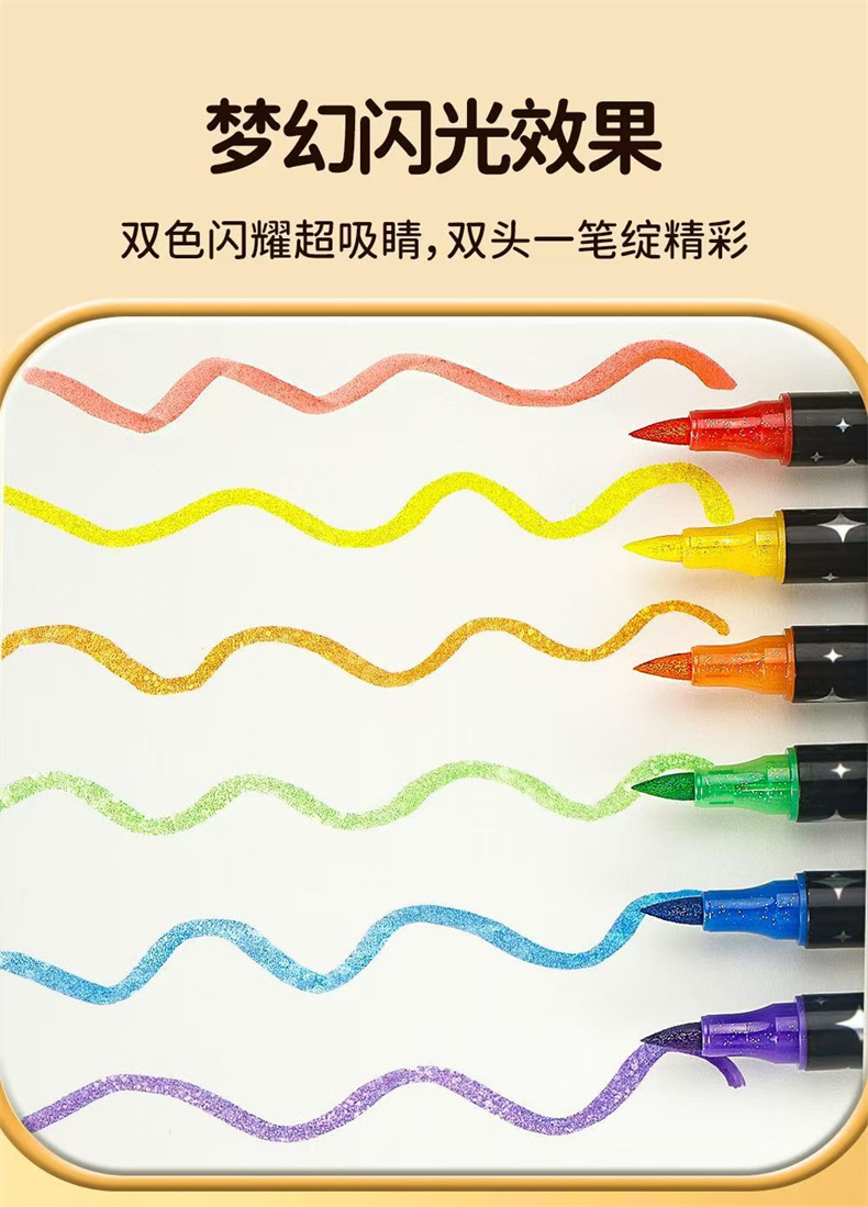 跨境亚马逊爆款双头双色闪光马克笔儿童手绘画加粗软头丙烯彩笔