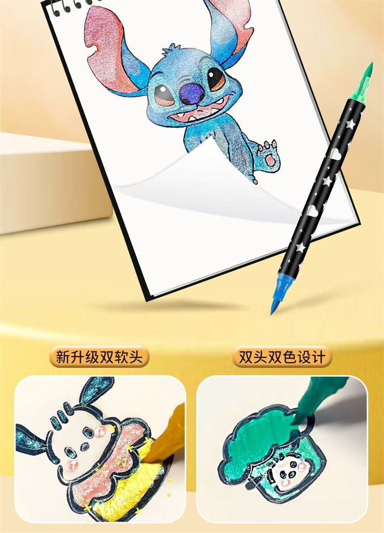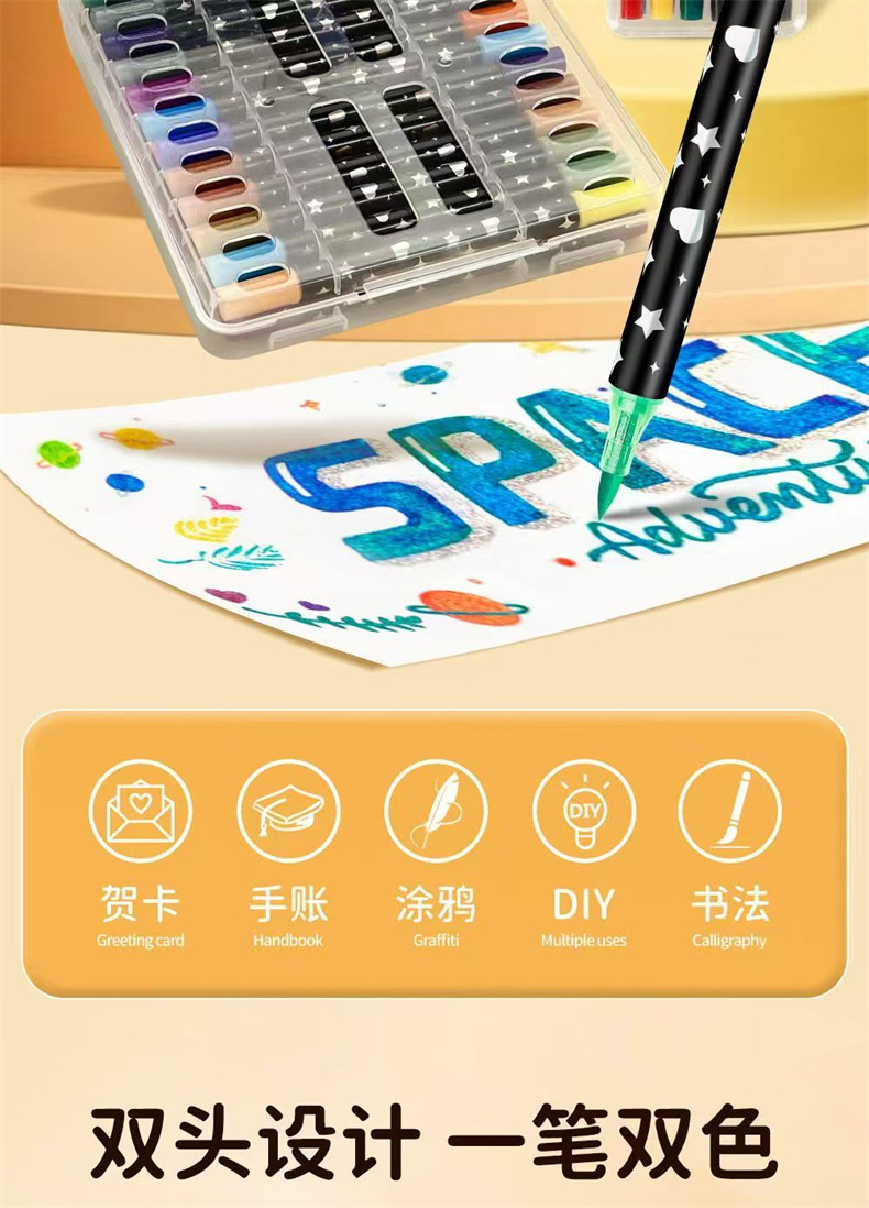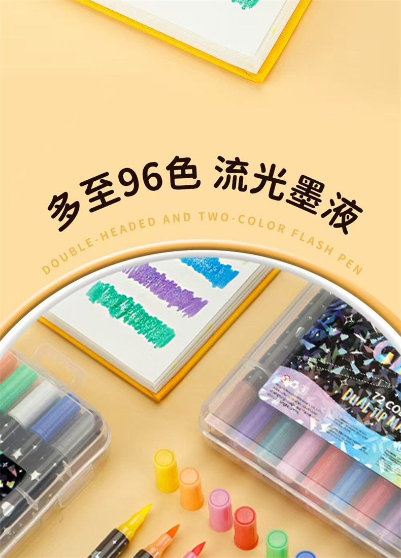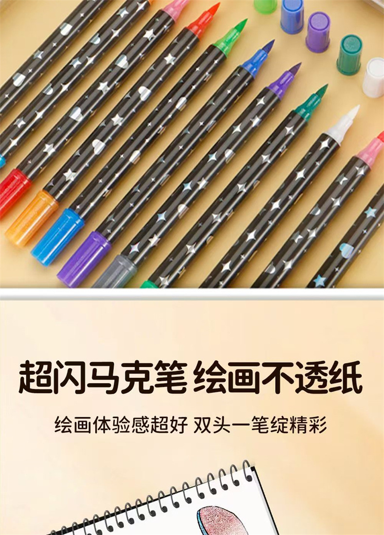 跨境亚马逊爆款双头双色闪光马克笔儿童手绘画加粗软头丙烯彩笔