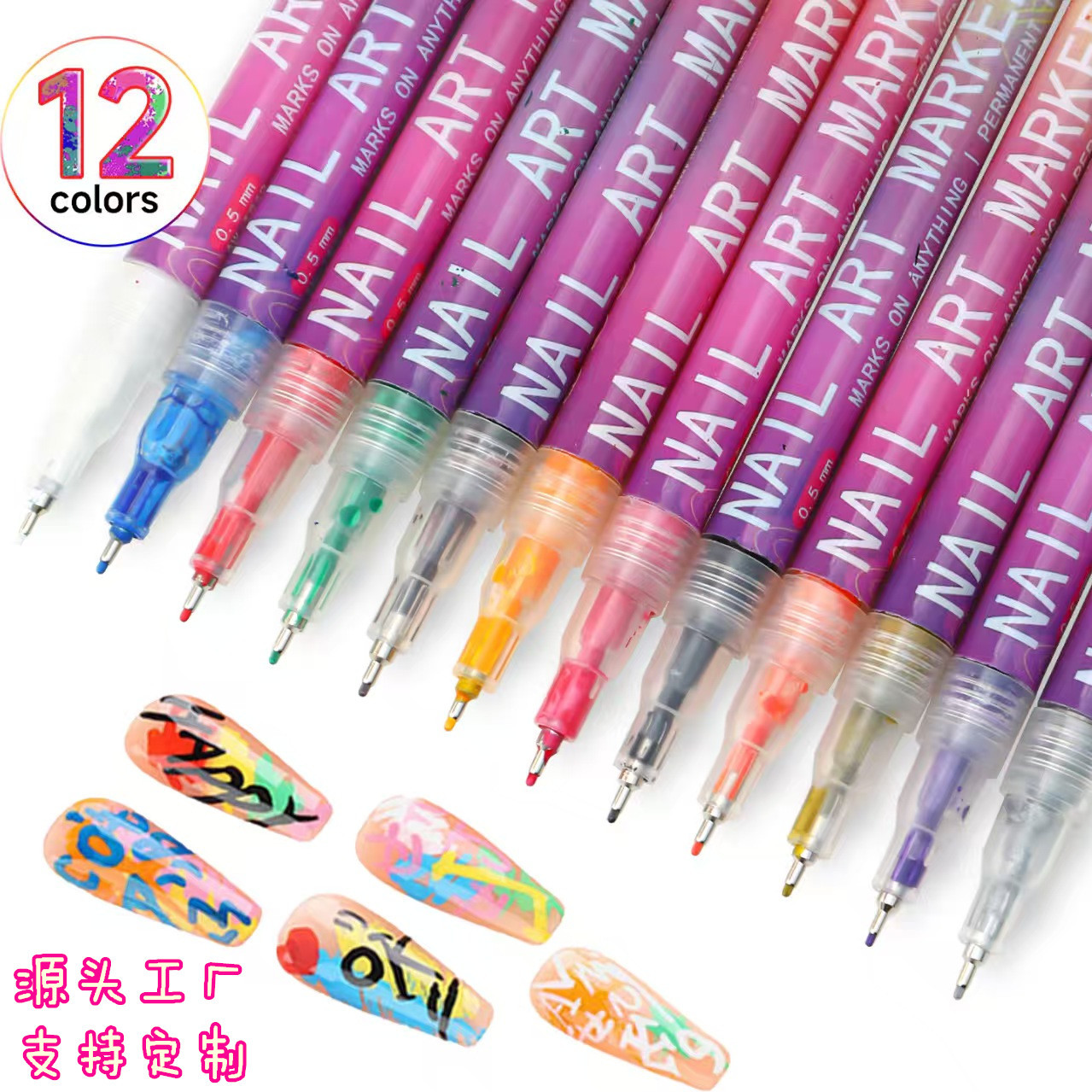 现货跨境爆款美甲涂鸦笔指甲油笔丙烯细头彩色勾线彩绘DIY马克笔