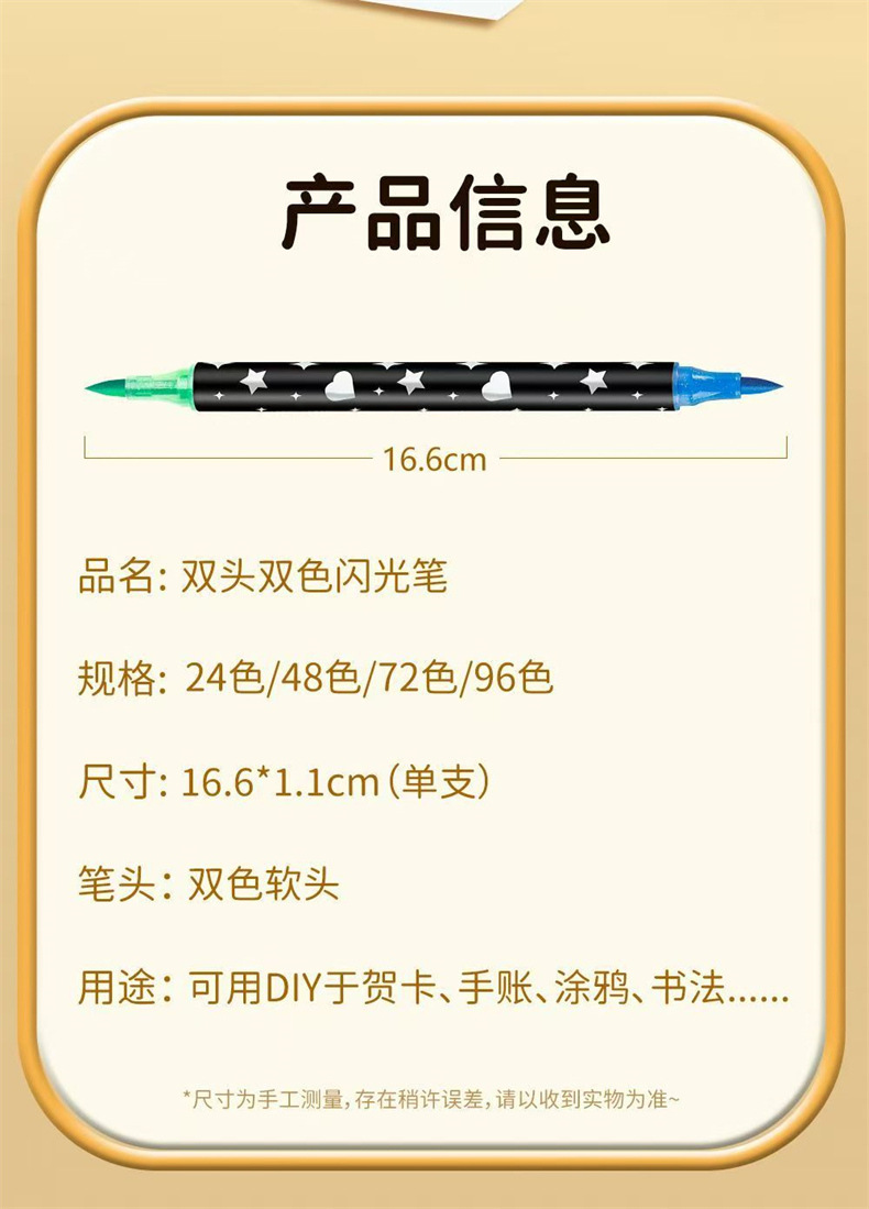 跨境爆闪双头双色闪光丙烯马克笔软头彩色流沙美术专用手账荧光笔