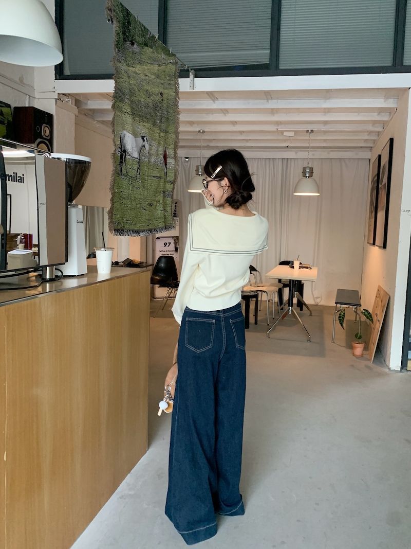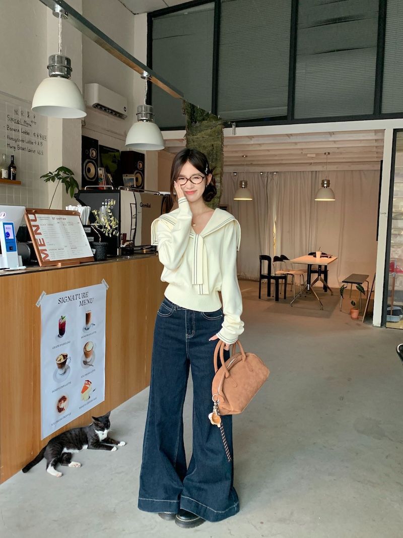 秋の修身の中にセーターを着ます。