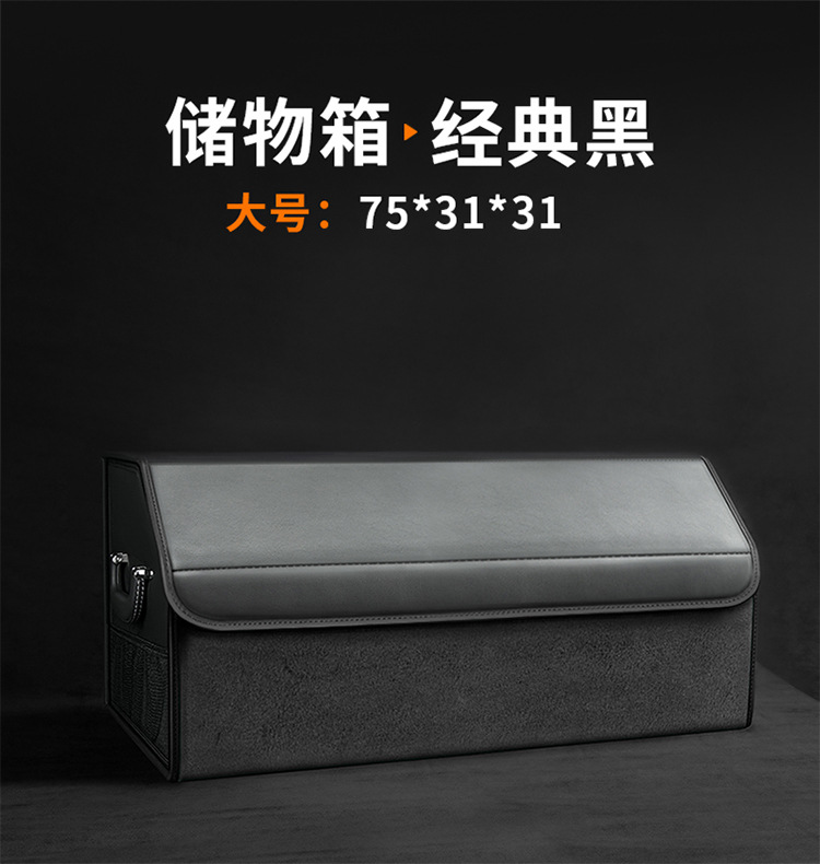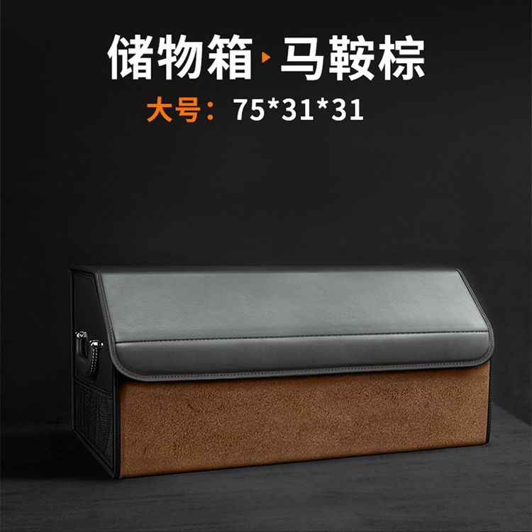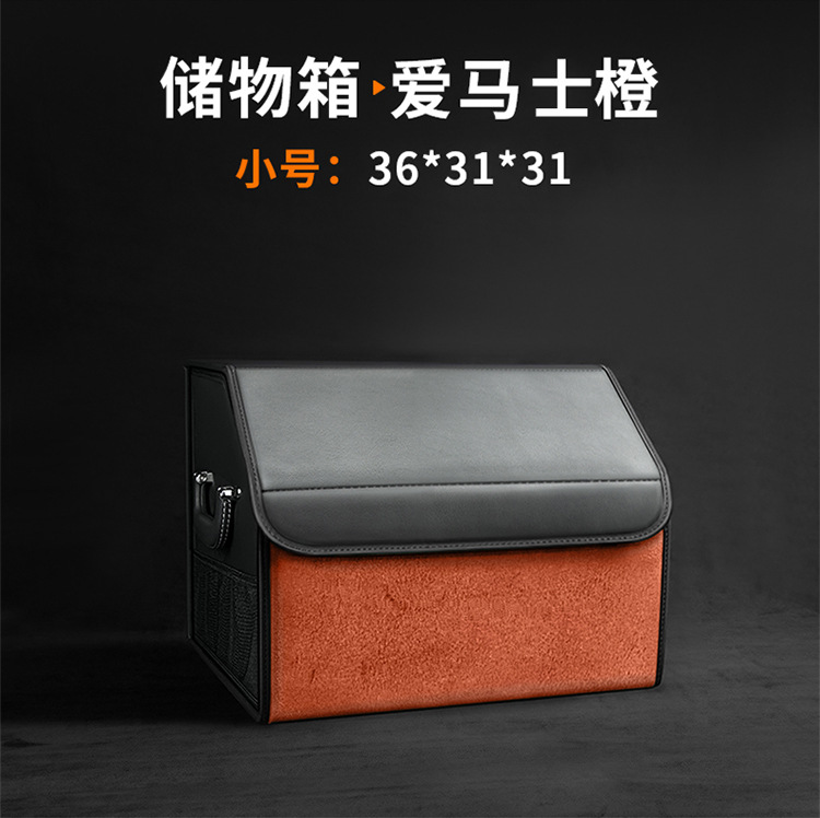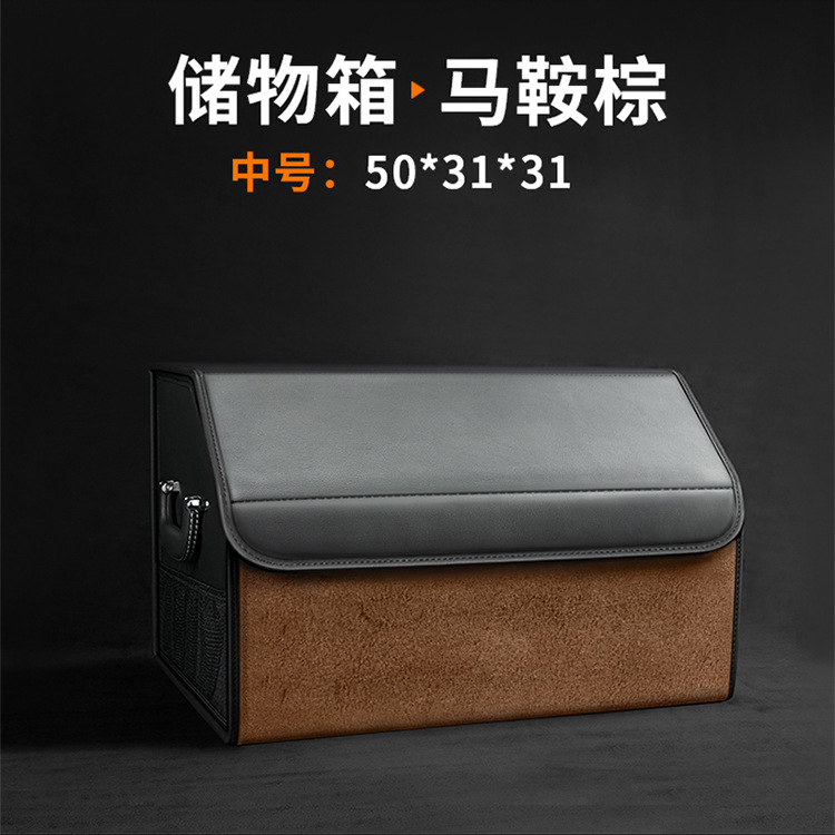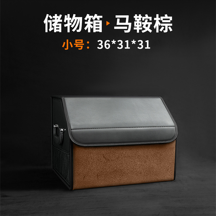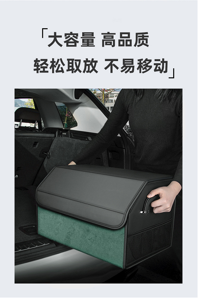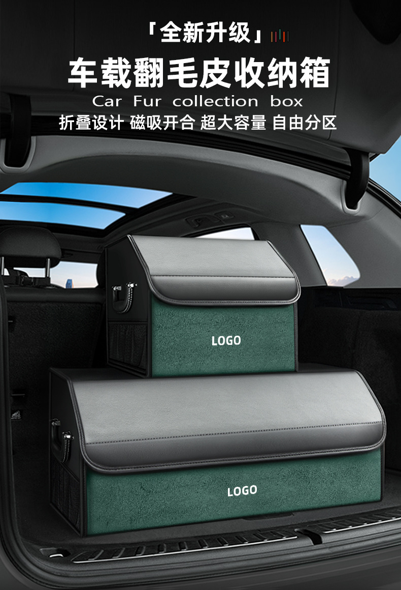 后备箱收纳箱储物盒通用款翻毛皮革材质可折叠大容量汽车改装储物