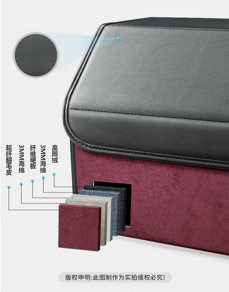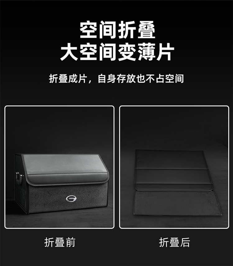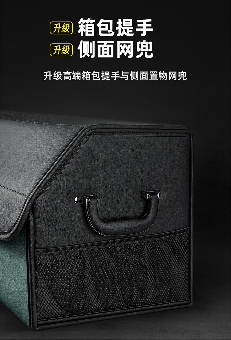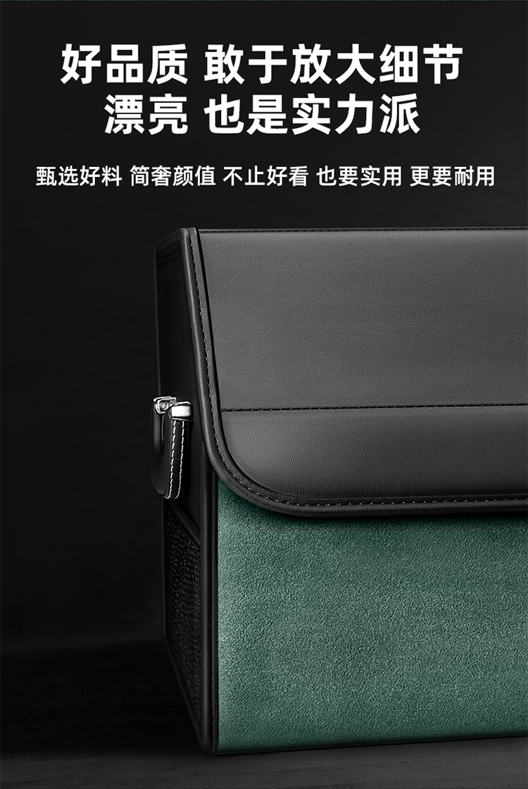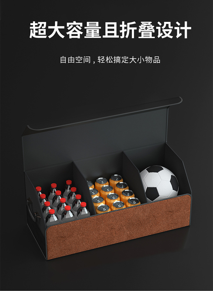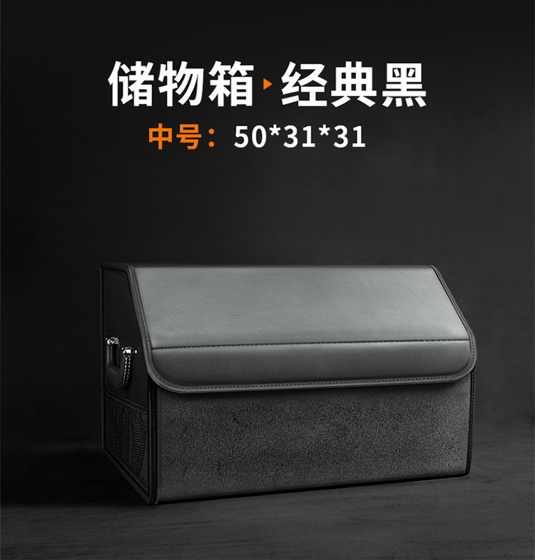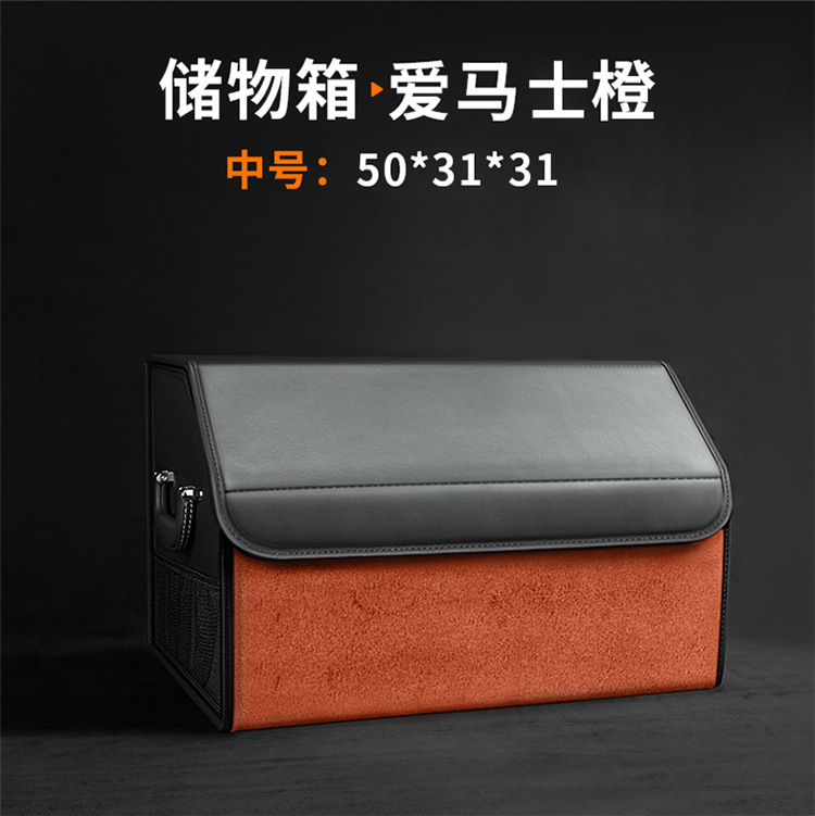 后备箱收纳箱储物盒通用款翻毛皮革材质可折叠大容量汽车改装储物