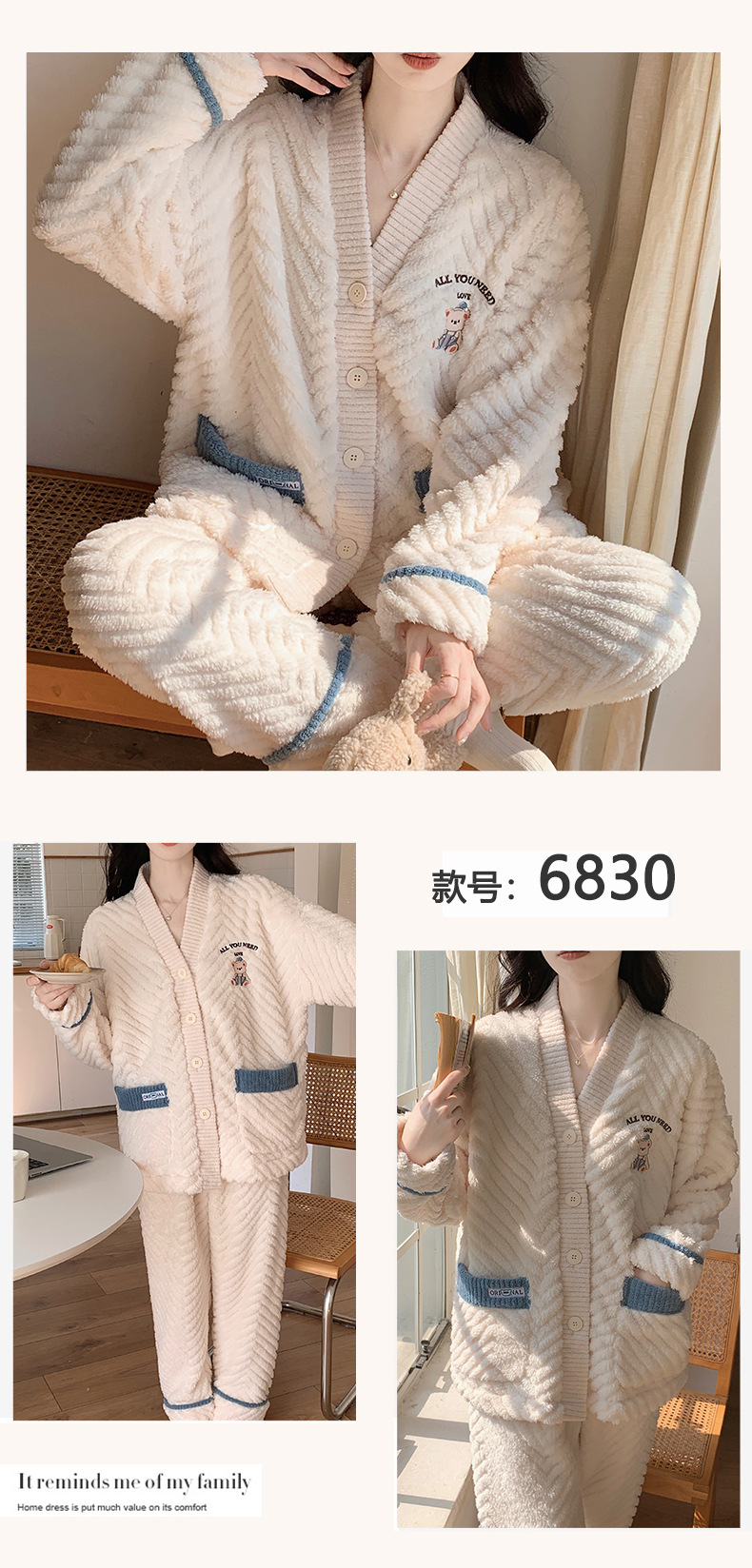 莎粒绒系列】复古高级感可外穿法兰绒秋冬睡衣暖绒保暖女士家居服