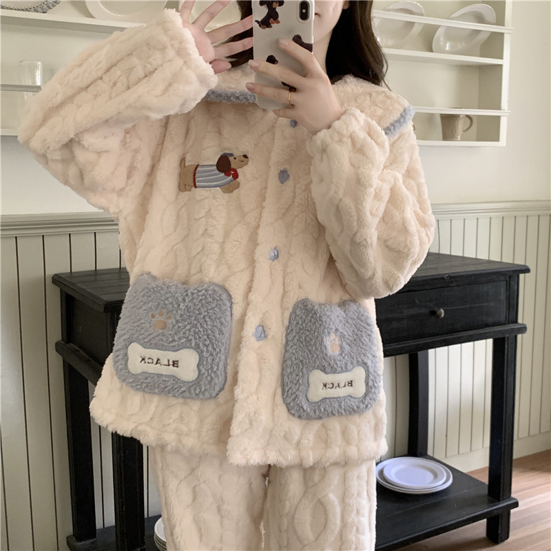 公主风可爱睡衣加厚加绒珊瑚绒秋冬学生外穿卡通宿舍法兰绒家居服