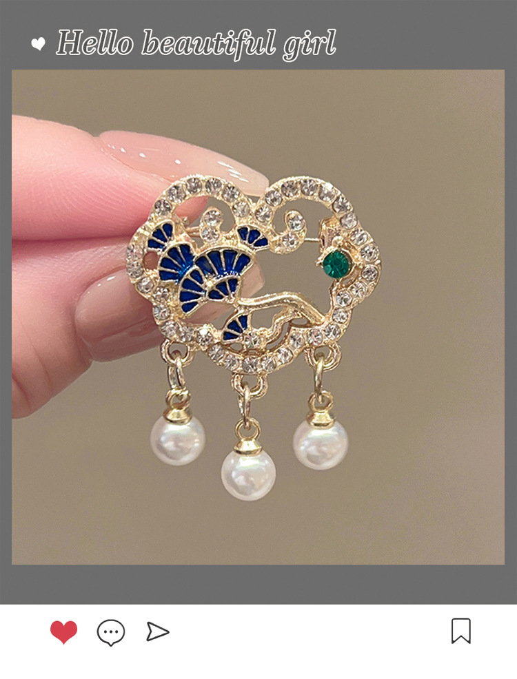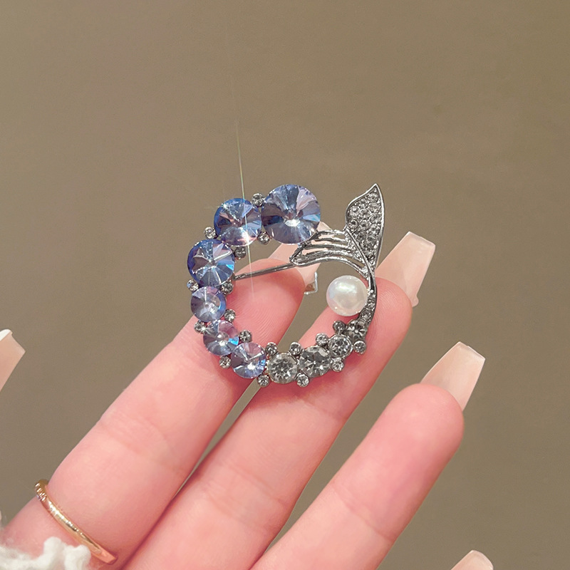 新款轻奢海洋鱼尾精致胸针仿珍珠气质设计西装 衣饰胸花别针配饰