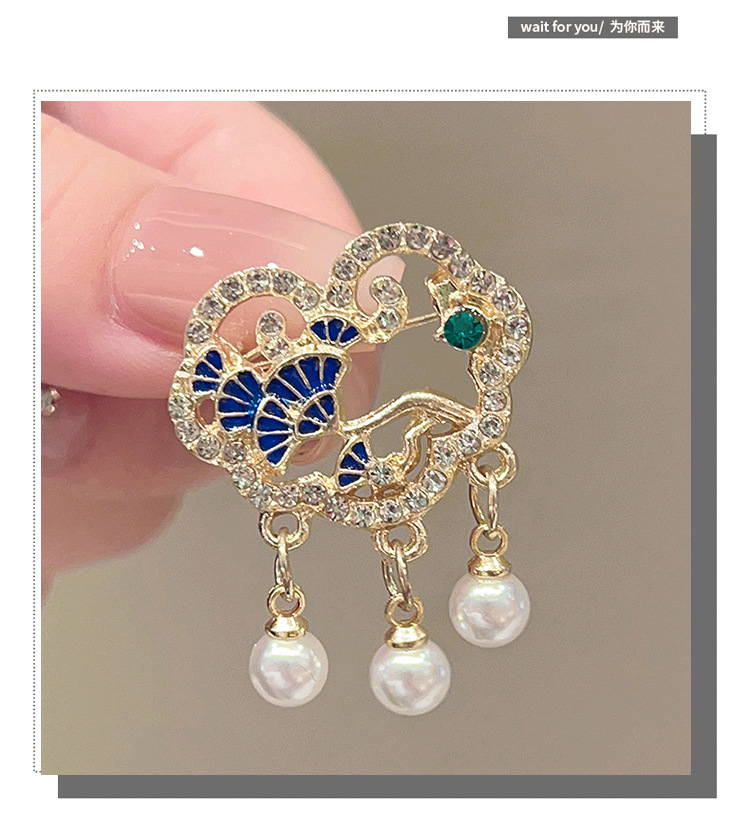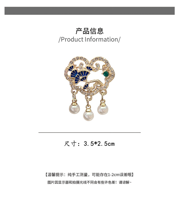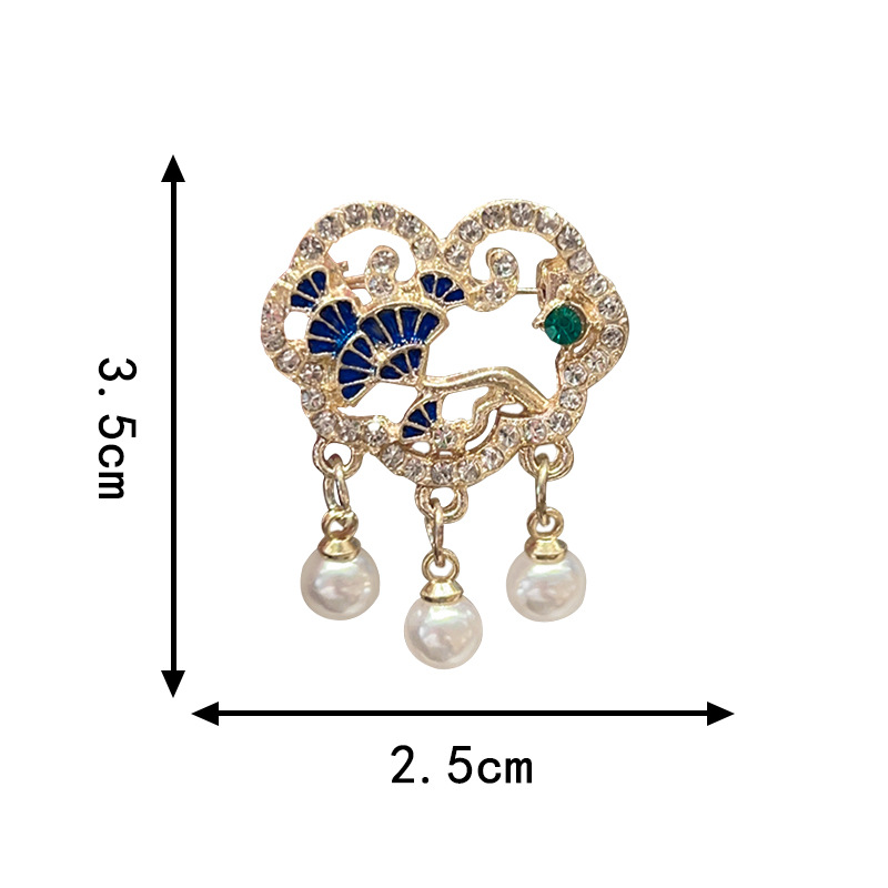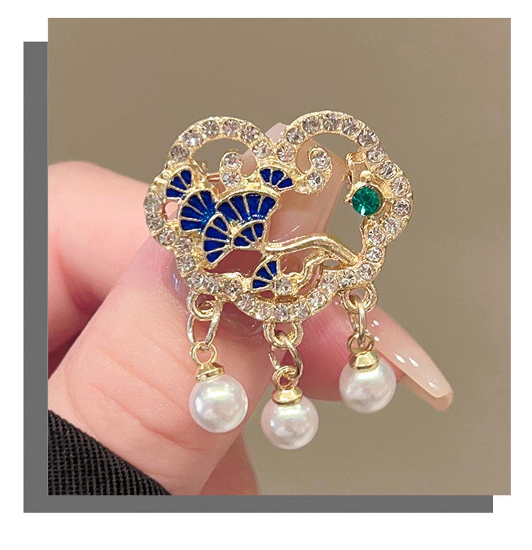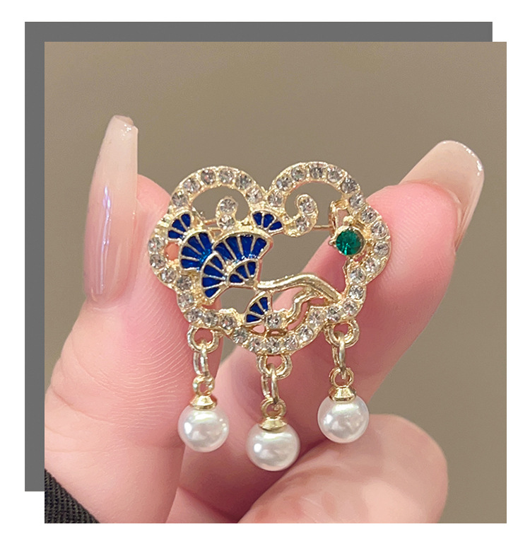 新中式扇形花纹镂空扇叶如意锁胸针气质祥云珍珠小别针女汉服装饰