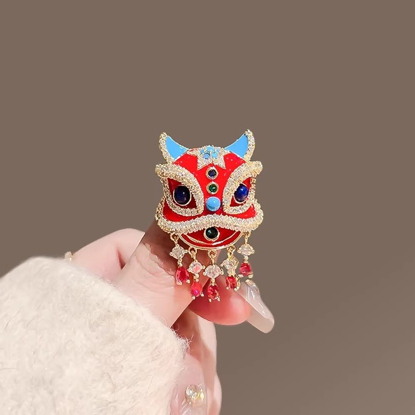 中国风国潮醒狮胸针西装毛衣配饰外套别针古装汉服轻奢高档胸花女