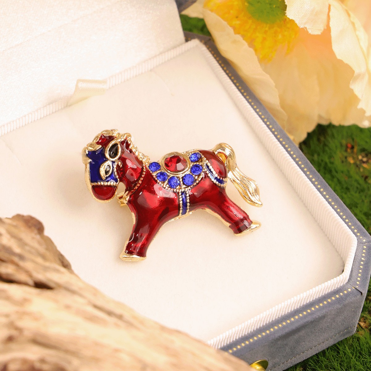2026年新作 レトロな赤い木馬ブローチ 繊細で高級感のあるファッションピン 高級感のある干支馬ピン