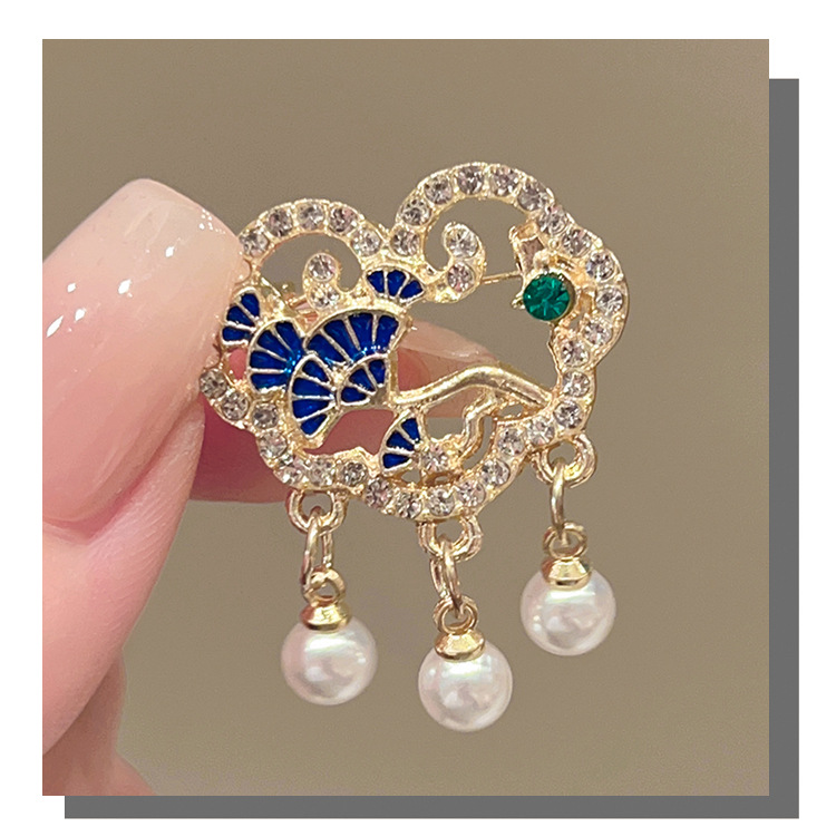 中国风梅花喜鹊团扇流苏复古胸针小众设计女高档胸花时尚别针装饰