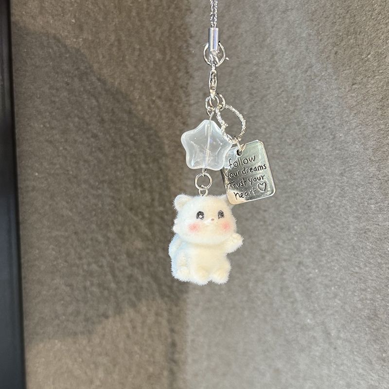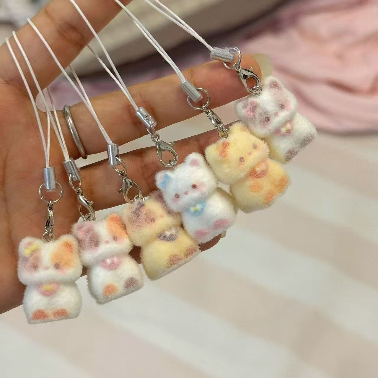 新款卡通可爱植绒立体树脂猫咪钥匙链包包挂件手机挂绳礼物小饰品