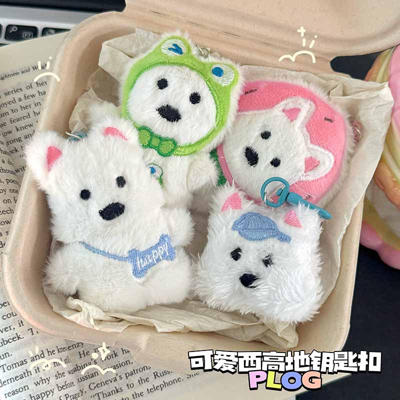 かわいいぬいぐるみのキーホルダーins西高地子犬少女人形ストラップ