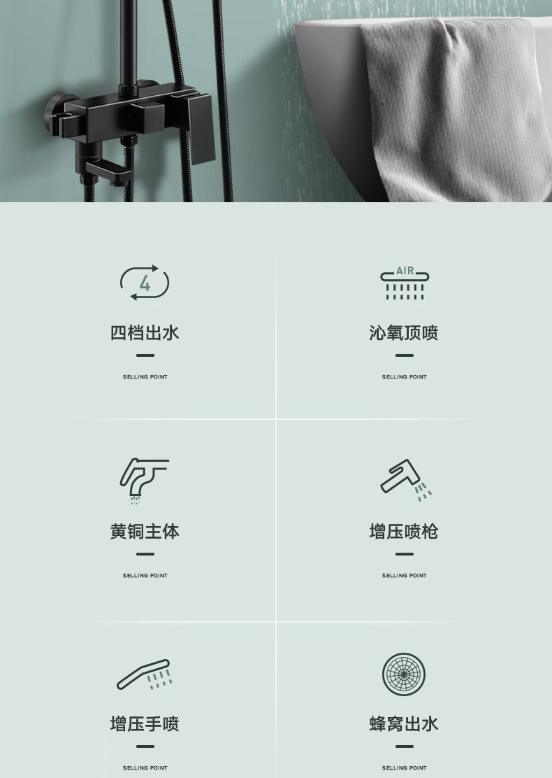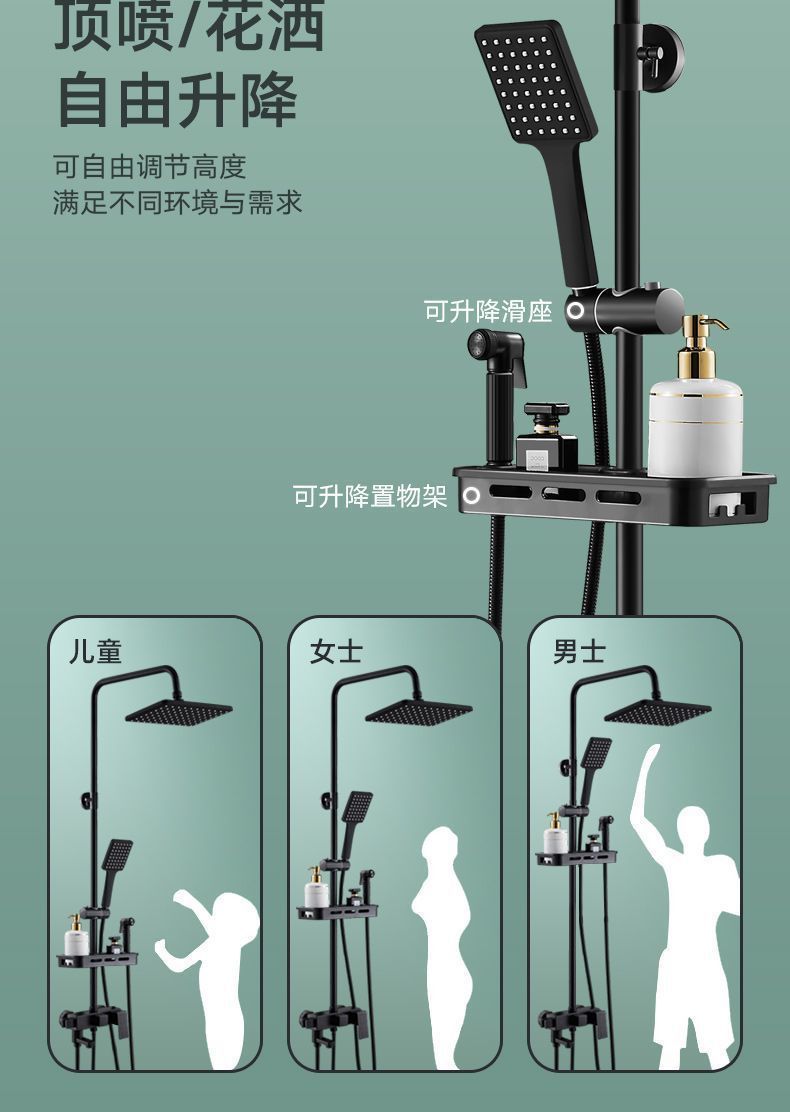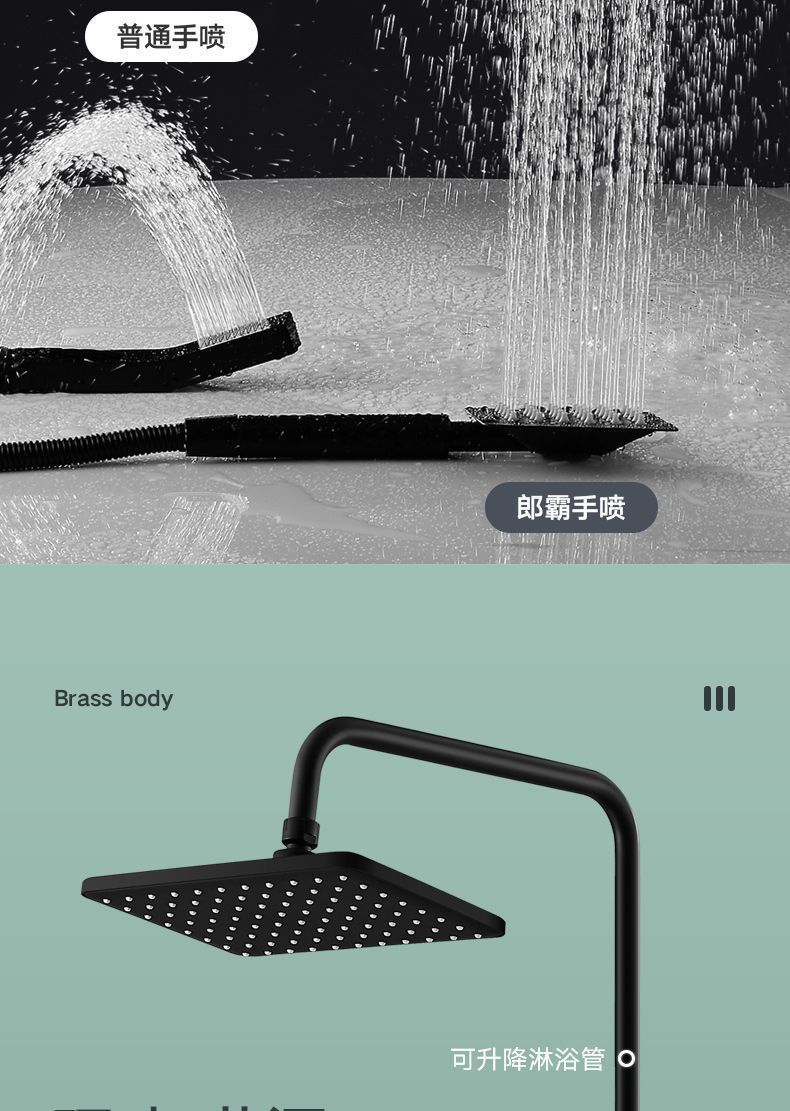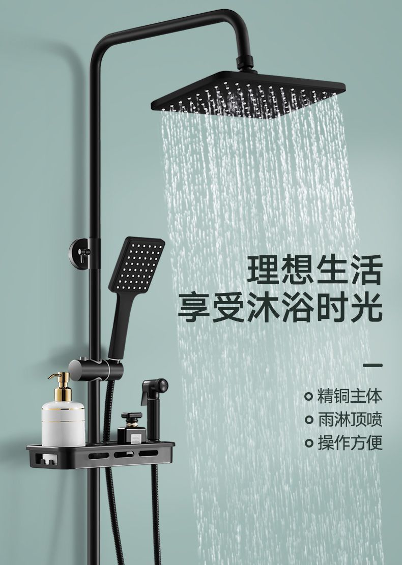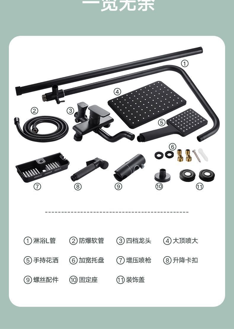 跨境热销花洒套装酒店淋雨沐浴器卫生间洗澡增压暗装黑花洒一整套