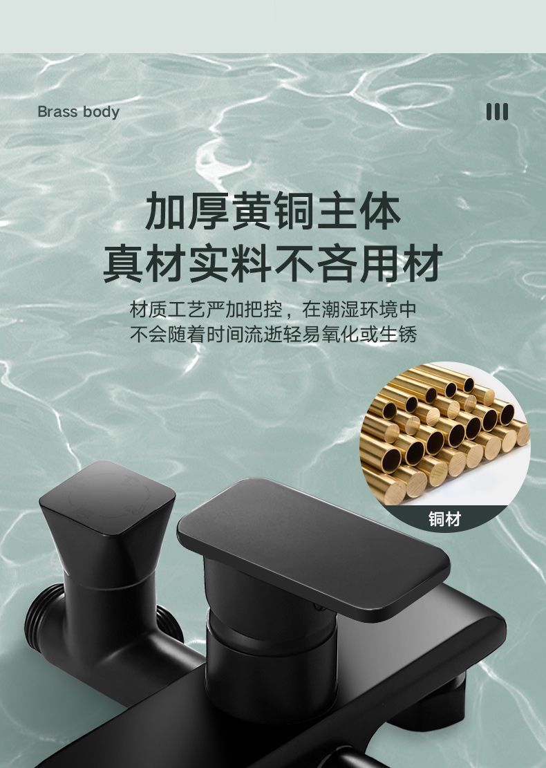 精铜恒温混水阀淋浴洗澡冷热水开关混合龙头浴室浴缸三联花洒套装