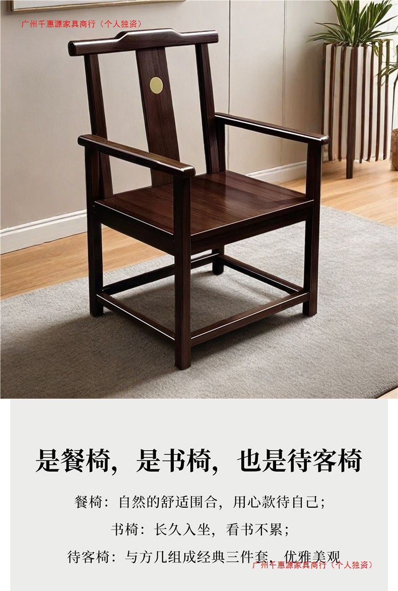 仿古太师椅餐椅家用椅子实木琴梳椅圈椅茶椅主人官帽椅新中式圈椅