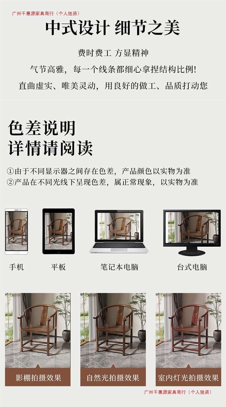 颜色 黑檀色拆装官帽椅,黑檀色拆装长梳椅,黑檀色拆装两把月牙椅,黑檀色拆装1把月牙椅
