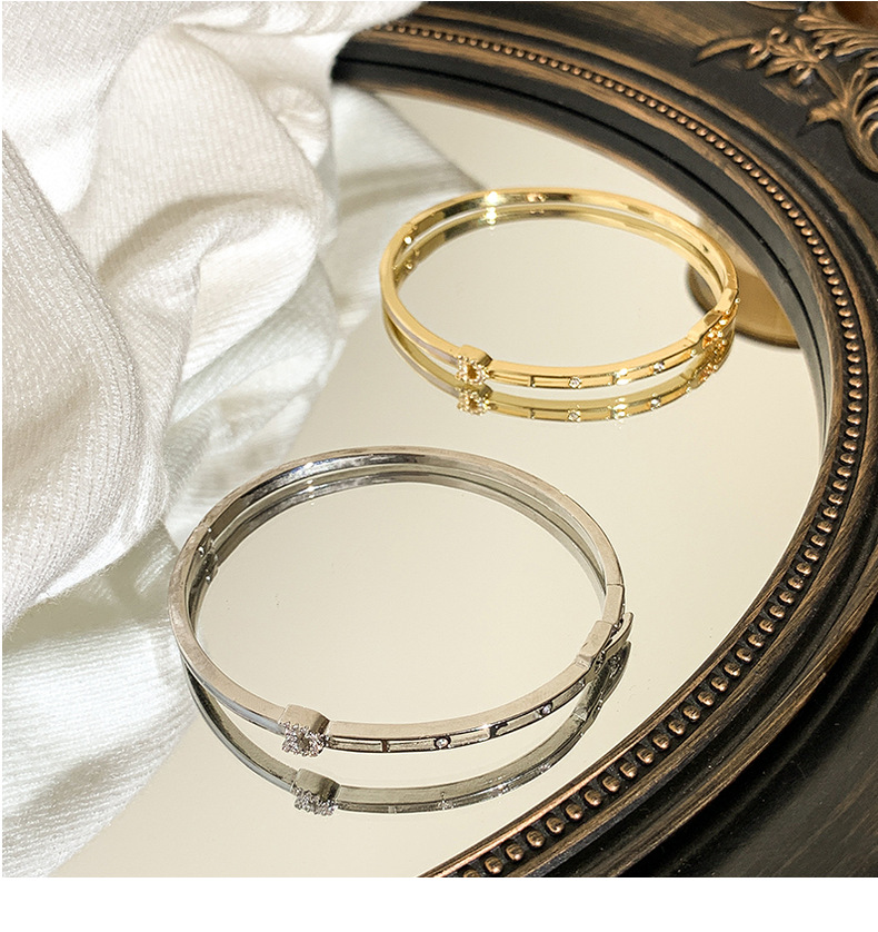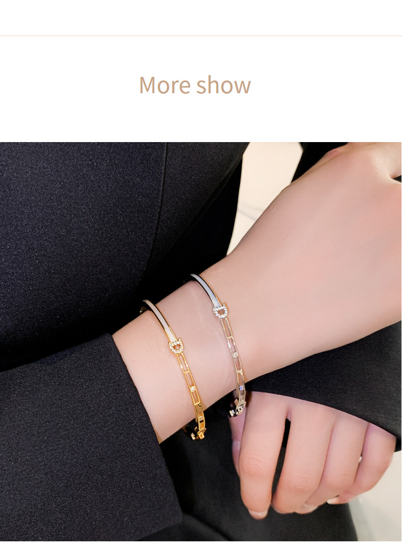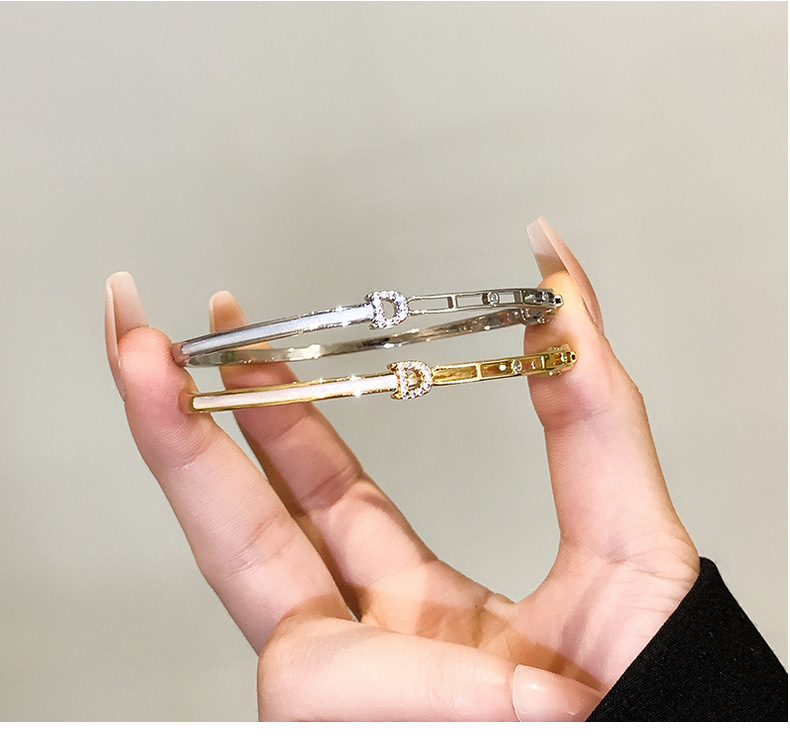 铜镀真金D字满钻卡扣手镯女镶嵌锆石滴油镂空设计高级感手饰批发