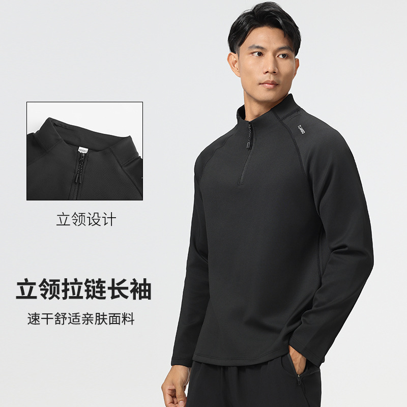 ディートン春夏速乾通気性スポーツTシャツ、ハーフジップスタンドカラー長袖メンズアウトドアランニングフィットネスウェア、バスケットボールウェア