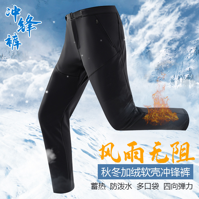 屋外ソフトシェルパンツ防風ベルベット保温通気運動徒歩男性モデル山岳登山ズボンスキーズボン