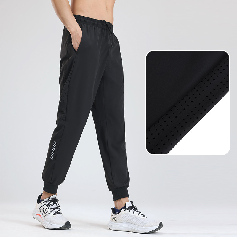 春夏メンズ速乾スポーツパンツ アウトドアランニングフィットネス 薄手通気性ホール付き伸縮性レギンスパンツ