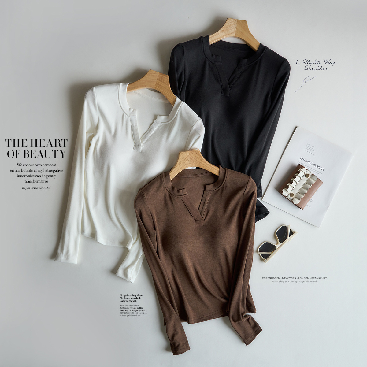 带胸垫黑色v领长袖正肩T恤女内搭打底针织衫修身显瘦上衣穿欧美风