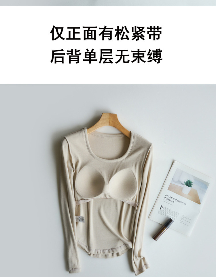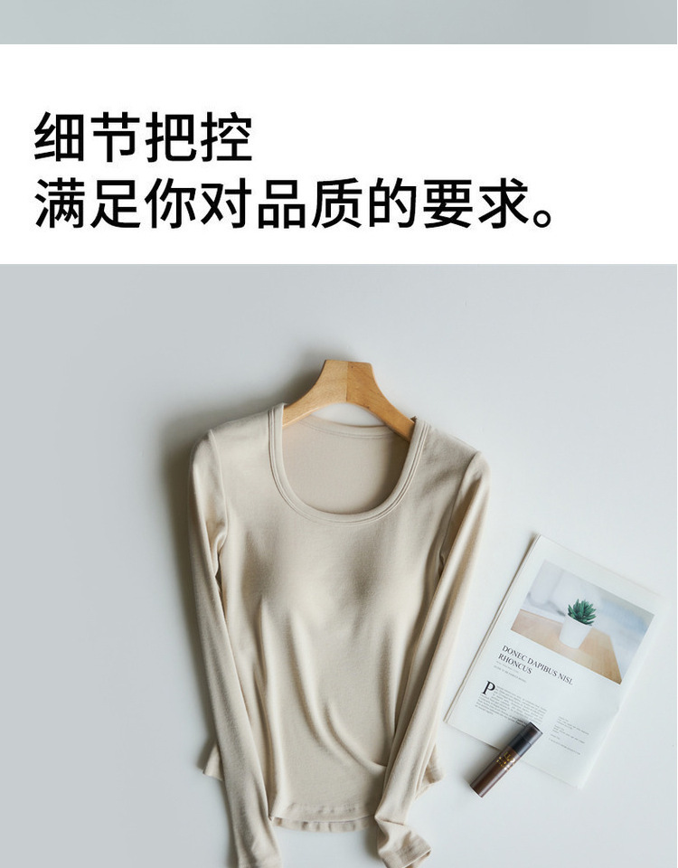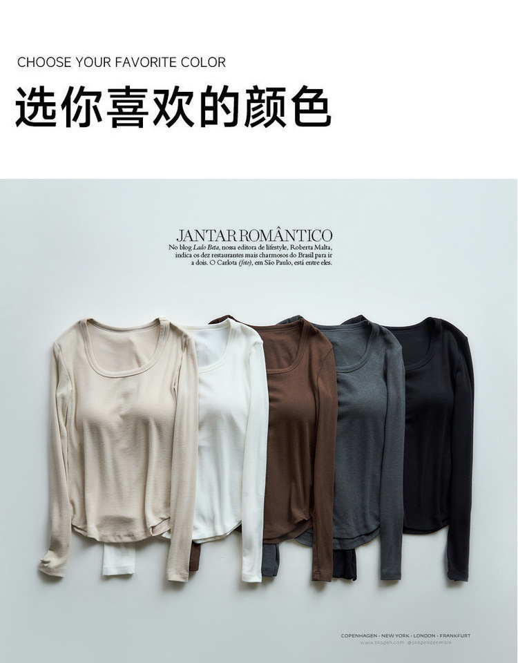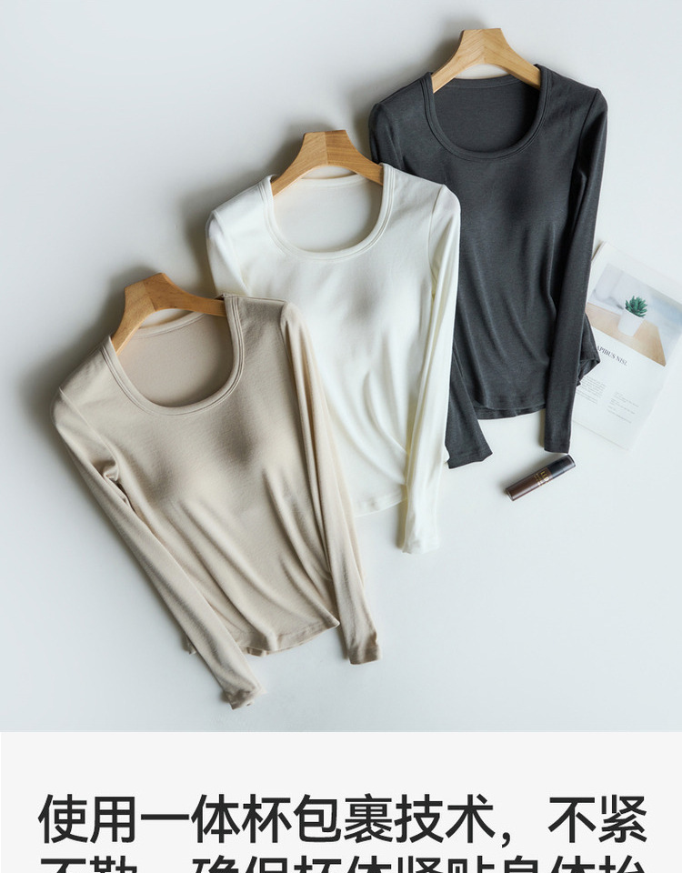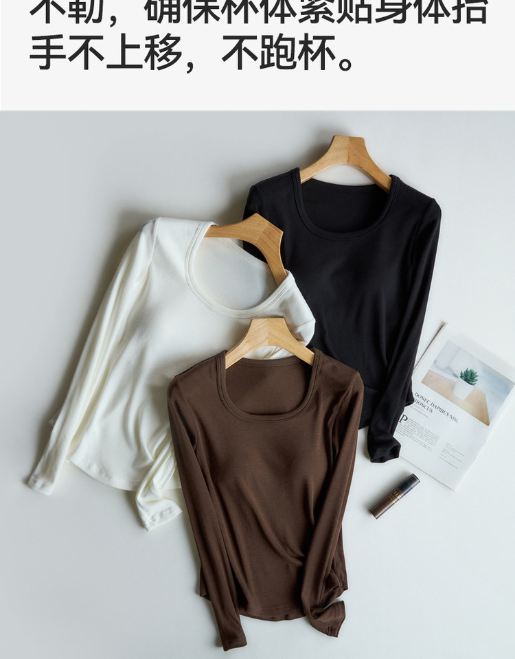 曲线打底衫 带胸垫U领亲肤内搭长袖T恤秋冬季针织固定杯百搭上衣